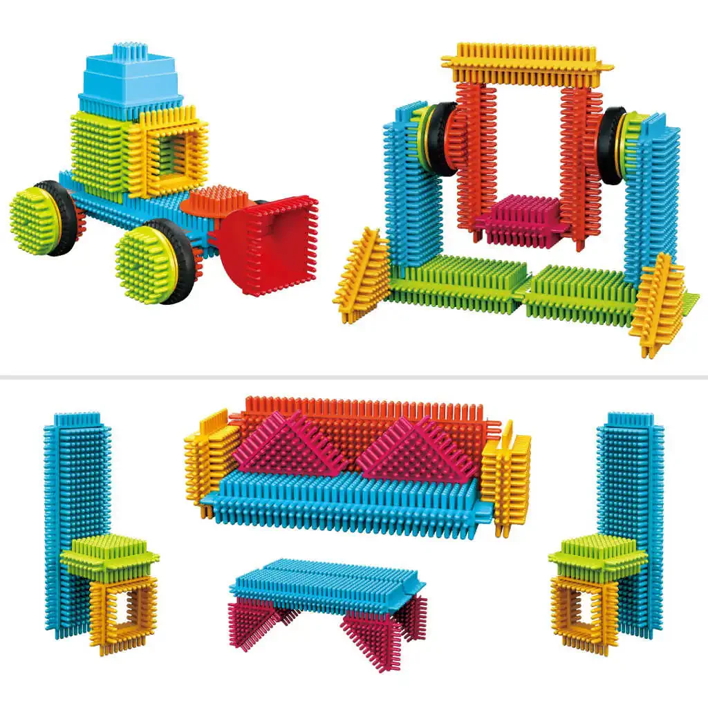 Contixo STEM Bristle Строительные блоки для малышей и детей в возрасте 3-8 лет, развивающий и сенсорный игрушечный набор, 244 шт. - Радужные цвета