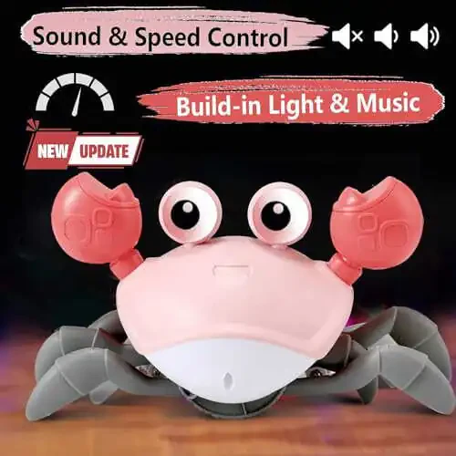 Control Future Baby Girl Toys Tummy Time is a perfect way for your baby to develop their motor skills, coordination, and strengthen their muscles. The pink crawling crab, with its vibrant colors and cute design, will entertain your baby while contributing to their cognitive development. The crab's moving legs help your baby develop hand-eye coordination and fine motor skills, while the bright colors and different textures stimulate your baby mentally and sensorially.
