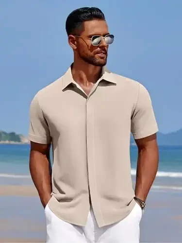 Erkek Yazlık Gömleği: COOFANDY Kısa Kollu Plaj Gömleği | Kırışmayan, Esnek ve Hafif