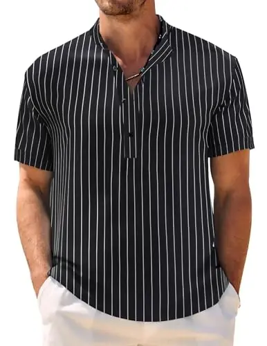 Erkek gömlek, Henley gömlek, yazlık tişört, kısa kollu gömlek, düğmeli gömlek, yakasız gömlek, pamuklu keten gömlek, günlük giyim, plaj gömleği, Hippie tişört