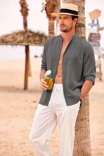 COOFANDY Erkek Küba Guayabera Gömlekleri ile tarzınızı yükseltin! Bu rahat uzun kollu, düğmeli, hakim yakalı, keten yazlık plaj gömlekleri, sıcak havalarda şıklığınızdan ödün vermeden konforunuzu ön planda tutar. İster plajda güneşlenin, ister bir düğüne katılın, ister sadece günlük aktivitelerinizde rahat bir şıklık arayın, bu gömlekler her duruma mükemmel uyum sağlar. Yüksek kaliteli işçiliği ve şık tasarımı ile COOFANDY Guayabera gömlekleri, gardırobunuzun vazgeçilmez bir parçası olacak. Bu gömlek, sadece bir giysi değil, aynı zamanda bir yaşam tarzıdır. Kendinizi rahat ve özgür hissedeceğiniz, stilinizi yansıtacağınız bir seçenektir. Gömleğin hafif ve nefes alabilen kumaşı sayesinde sıcak yaz günlerinde bile serin kalacak, terlemeyi en aza indireceksiniz. Uzun kollu tasarımı, güneşin zararlı etkilerinden korunmanıza yardımcı olurken, düğmeli yapısı ise kolayca giyilip çıkarılmasını sağlar. Hakim yaka detayı, gömleğe modern ve şık bir hava katarken, dikey pililer ise hareketlilik ve dinamizm sağlar. Ön kısımdaki zarif desenler, gömleği sıradanlıktan uzaklaştırarak dikkat çekici bir hale getirir. COOFANDY Guayabera gömlekleri, farklı renk ve beden seçenekleri ile her tarza ve vücut tipine uygun alternatifler sunar. İster klasik bir görünüm için beyaz veya bej renklerini tercih edin, ister daha cesur bir stil için mavi veya yeşil tonlarını deneyin, her durumda kendinizi özel hissedeceksiniz. Gömleği, keten şortlar, günlük pantolonlar veya şortlarla kolayca kombinleyerek farklı tarzlar yaratabilirsiniz. İster düğmeli olarak tek başına kullanın, ister tişört veya atlet üzerine açık bırakarak daha rahat bir görünüm elde edin, her şekilde stilinizi konuşturacaksınız. COOFANDY Erkek Küba Guayabera Gömlekleri, sadece sizin için değil, aynı zamanda sevdikleriniz için de harika bir hediye seçeneğidir. Erkek arkadaşınıza, eşinize, babanıza veya oğlunuza bu şık ve kullanışlı gömleği hediye ederek onları mutlu edebilirsiniz. Onlara hem tarz sahibi hem de konforlu bir giysi armağan ederek özel olduklarını hissettirebilirsiniz. Bu gömlekler, plaj tatilleri, düğünler, özel günler, aile fotoğrafları, partiler, yoga, iş veya günlük giyim için mükemmel bir seçimdir. İlkbahar, yaz ve sonbahar aylarında rahatlıkla kullanabileceğiniz bu gömlekler, gardırobunuzun vazgeçilmezi olacak. COOFANDY ile şıklığı ve konforu bir arada yaşayın!