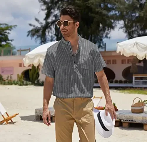 COOFANDY Erkek Pamuklu Keten Henley Gömlek, kısa kollu, hippi tarzı, rahat plaj tişörtü, cebiyle birlikte, gardırobunuzun vazgeçilmezi olmaya aday! Yaz aylarının sıcak günlerinde hem şıklığınızı koruyacak hem de konforunuzdan ödün vermeyeceğiniz bu özel tasarım, günlük kullanımın yanı sıra özel günlerinizde de size eşlik edecek. Yüksek kaliteli pamuklu keten kumaşı sayesinde teninize nefes aldırırken, hafif yapısıyla gün boyu rahatlık sunar. Nem emici özelliği ile terlemeyi en aza indirerek gün boyu ferah kalmanızı sağlar.Henley yakası, düz renk tasarımı, dar kesimi ve yuvarlak etek ucu ile dikkat çeken bu gömlek, klasik ve modern tarzı bir araya getiriyor. Gömleğin öne çıkan özelliklerinden biri de düğmeli yakasıdır. Bu detay, gömleğe farklı bir hava katarken, aynı zamanda kullanım kolaylığı da sunar. İster düğmeleri ilikleyerek daha resmi bir görünüm elde edin, isterseniz de düğmeleri açarak daha rahat ve salaş bir tarz yaratın.COOFANDY Henley Gömlek, farklı kombinasyonlarla kullanıma uygun çok yönlü bir parçadır. Şık bir görünüm için kumaş pantolon veya chino pantolonlarla kombinleyebilir, daha rahat bir tarz için ise jean veya şortlarla tamamlayabilirsiniz. Yaz aylarında plajda, tatilde veya günlük aktivitelerinizde rahatlıkla tercih edebileceğiniz bu gömlek, aynı zamanda doğum günü, düğün, kamp, seyahat, yoga, randevu, parti, toplantı, iş, tatil, korsan cosplay'i, Rönesans festivali, meditasyon gibi farklı etkinlikler için de ideal bir seçimdir.Sevdiklerinize hediye arayışındaysanız, COOFANDY Erkek Pamuklu Keten Henley Gömlek, babanız, erkek kardeşiniz, erkek arkadaşınız, kocanız, oğlunuz veya diğer erkek arkadaşlarınız için harika bir hediye seçeneği olacaktır. Onların tarzına ve konforuna önem verdiğinizi göstermenin en şık yolu! Makinede yıkanabilir özelliği sayesinde kolayca temizlenebilir ve uzun ömürlüdür. Kumaşının kalitesi sayesinde yıkama sonrası çekme veya solma gibi sorunlarla karşılaşmazsınız.COOFANDY Erkek Pamuklu Keten Henley Gömlek ile tarzınızı yansıtın, konforunuzu ön planda tutun ve her ortamda dikkatleri üzerinize çekin. Bu özel tasarım, gardırobunuzun en sevilen parçalarından biri olmaya aday!