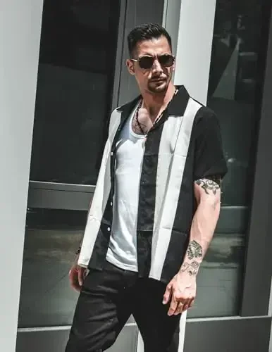 erkek bowling gömleği, vintage gömlek, kısa kollu gömlek, Küba plaj gömleği, retro gömlek, yazlık gömlek, düğmeli gömlek, erkek giyim, COOFANDY, rahat gömlek