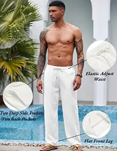 COOFANDY Men's Casual Linen Pants combine comfort and style, making them an indispensable part of your summer wardrobe. Whether for daily use in the city or a relaxing vacation on the beach, these linen pants are designed to adapt to any environment. Thanks to the high-quality linen fabric, you stay fresh and cool all day long, while the elastic waistband and adjustable drawstrings provide a perfect fit. The Straight Leg style allows you to achieve a stylish look without restricting your freedom of movement. Front and back pockets are ideal for safely carrying your personal belongings, from your phone to your keys. COOFANDY linen pants stand out not only for their comfort but also for their versatility. You can create a casual style with T-shirts and sneakers, or a more formal look with a stylish shirt and sandals. From beach weddings to evening parties, from vacations to weekend trips, you can easily choose them for many different events. Considering that the thin linen fabric may be slightly transparent, it is recommended to pay attention to the choice of underwear, especially in light colors. Since the khaki linen fabric has a more distinctive texture, it is recommended to wash it before the first use. Take your style and comfort to the next level with COOFANDY Men's Casual Linen Pants. These pants, which will be an indispensable part of your summer wardrobe, are the ideal way to stay cool and stylish in hot weather. These linen pants, which will accompany you in every moment from daily wear to special events, are candidates to be the choice of both comfortable and stylish men. With its flexible structure, breathable fabric and stylish design, COOFANDY linen pants will be indispensable in summer. Whether you are strolling around the city or sunbathing on the beach, these pants will offer you comfort and style all day long. Discover COOFANDY Men's Casual Linen Pants now to refresh your wardrobe and prepare for hot weather. These pants, which offer style and comfort together, are a must-have in every man's wardrobe. Choose COOFANDY's linen pants to feel comfortable and free.