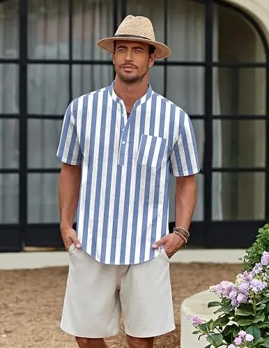 linen shirt, cotton shirt, henley shirt, men's shirt, summer shirt, short sleeve shirt, relaxed shirt, button-down shirt, beach shirt, breathable shirt