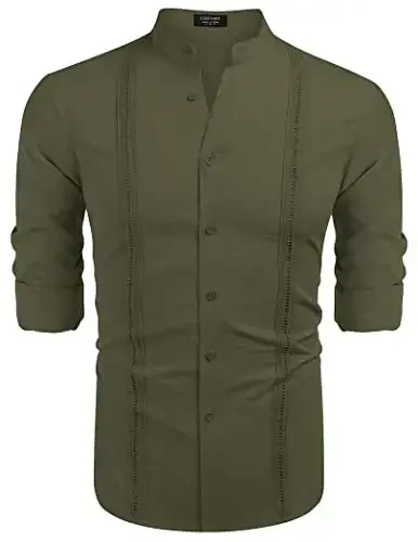 COOFANDY Men's Cuban Guayabera Shirts are long-sleeved, button-down, band collar linen summer beach shirts that combine casual elegance and comfort. These shirts keep you cool and comfortable in warm weather while keeping you stylish. Combining classic Cuban style with a modern touch, these shirts are poised to become an indispensable part of your wardrobe.**Product Description**Combine the warmth of summer with your style with COOFANDY Men's Cuban Guayabera Shirts. These shirts offer not just a piece of clothing, but a lifestyle. These shirts, in which traditional Cuban design is interpreted with modern lines, are an ideal choice for men who prioritize both comfort and elegance. Thanks to its long-sleeved design, it protects you from the harmful effects of the sun, while the band collar detail gives you a sophisticated look. The button-down front makes it easy to put on and take off the shirt, while the linen fabric structure helps you stay cool and fresh all day long. Whether you spend a relaxing day on the beach or attend a stylish dinner in the city, these shirts adapt to any environment. COOFANDY Guayabera shirts not only improve your appearance but also how you feel. The lightness and breathability of natural linen fabric maintains your comfort even in hot weather. The design of the shirt fits your body without restricting your freedom of movement and ensures that you always look well-groomed and stylish. Offered in different color and size options, these shirts offer an option suitable for every man's style and body. COOFANDY continues to make a difference in men's clothing with the perfect combination of quality and style. These shirts are a versatile piece that you can easily use not only in summer but also in spring and autumn. COOFANDY Guayabera shirts are the perfect choice for men who want to be stylish and comfortable at the office, on vacation, on special occasions or in daily life. These shirts, which should definitely be in your wardrobe, are the easiest way to reflect your style and feel good. These shirts, which combine Cuban inspiration with a modern touch, will complement every man's style and give him a unique feel.**Product Features*** Long sleeve design* Buttoned front* Band collar* Linen fabric* Casual and stylish look* Breathable fabric structure* Cut that provides freedom of movement* Different color and size options* Suitable for summer, spring and autumn months* Can be used on the beach, in the city and on special occasions* Traditional Cuban design* Interpreted with modern lines* Easy to put on and take off* Protection from the harmful effects of the sun* Indispensable part of the wardrobe**Additional Information**COOFANDY Men's Cuban Guayabera Shirts are made of high quality materials for long-lasting use. Please follow the washing instructions. Wash your shirt at low temperature and with similar colors. Pay attention to the ironing instructions in order to use your product for a long time. Due to the natural structure of linen fabric, slight wrinkles may occur, which is a characteristic feature of the shirt.