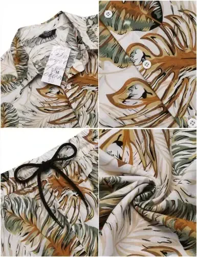 The COOFANDY Men's Hawaiian Outfit is an ideal choice for your summer wardrobe. Please check the size chart in the product pictures before ordering to make sure you choose the right size for you. Shirt and shorts are sold together. It is recommended to iron at low temperature and not wash with colored products to ensure the product's long life. Feel free to contact us with any questions. Happy shopping!