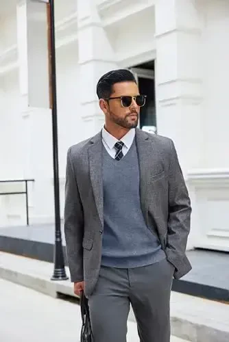 Introducing the COOFANDY Men's V-Neck Sleeveless Sweater Vest! This stylish and versatile knitted vest is set to become a staple in your wardrobe. Whether for business or casual activities, you'll always feel stylish and comfortable. Made from high-quality material, this slim-fit sweater vest offers both comfort and durability. The classic V-neck design, sleeveless cut, and fitted style create a modern look. It pairs perfectly with shirts and can be easily worn under a jacket or coat. The COOFANDY men's sweater vest stands out with its versatility. It can be worn at many different events, from parties to cricket, tennis to golf. It is an ideal choice for spring and autumn months, keeping you neither too hot nor too cold. Its stylish design and comfortable cut ensure you stand out in any setting. This sweater vest, which you can wear in the office or in daily life, helps you reflect your style. Produced with COOFANDY quality, this product is long-lasting and durable. It will be an indispensable part of your wardrobe and will always add elegance to you. Remember, you can choose one size larger for a comfortable fit. Make sure to check the size chart to choose the size that suits you best.
