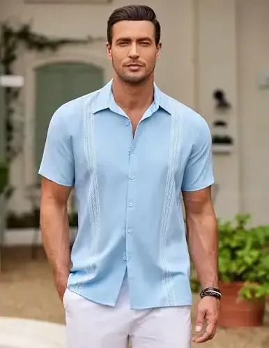 COOFANDY Erkek Küba Guayabera Gömlek ile yaz gardırobunuzu yenileyin! Bu gömlek, sıcak havalarda hem şık görünmek hem de rahat etmek isteyen erkekler için mükemmel bir seçimdir. Hafif ve nefes alabilen kumaşı sayesinde gün boyu serin ve ferah kalırken, kendine özgü Küba tarzı tasarımıyla da dikkatleri üzerinize çekeceksiniz. Guayabera gömleklerin geleneksel zarafetini modern detaylarla birleştiren bu tasarım, dört ön cep ve özenle yerleştirilmiş pile detaylarıyla zenginleştirilmiştir. Bu detaylar, gömleğe hem şık bir görünüm kazandırır hem de fonksiyonellik sunar. Günlük giyimden özel etkinliklere kadar geniş bir kullanım alanına sahip olan bu gömlek, gardırobunuzun vazgeçilmez bir parçası olacak.Düğmeli yakası ve kısa kollu tasarımı, sıcak yaz günlerinde rahat bir kullanım sunarken, şık ve modern bir görünüm de sağlar. İster kot pantolonlarla günlük bir tarz yaratın, ister keten pantolonlarla daha şık bir kombin oluşturun, COOFANDY Guayabera Gömlek her duruma uyum sağlar. Tatillerde, plajda, düğünlerde, partilerde veya sadece günlük gezintilerinizde stilinizi konuşturmak için ideal bir seçimdir.Geniş renk ve beden seçenekleri sayesinde her tarza ve vücut tipine uygun bir seçenek bulmak mümkündür. Kaliteli kumaşı ve özenli işçiliği sayesinde uzun yıllar boyunca kullanabileceğiniz bu gömlek, aynı zamanda makinede yıkanabilir ve kolayca ütülenebilir olmasıyla da pratik bir kullanım sunar. COOFANDY, erkek modasında kalite ve stilin simgesi olmaya devam ediyor. Bu Guayabera gömlek ile tarzınızı yansıtın ve yazın keyfini çıkarın. Şimdi sipariş verin ve benzersiz bir stile sahip olun!
