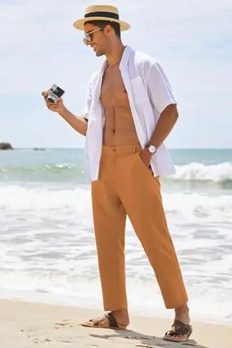 Мужские льняные брюки COOFANDY предлагают идеальное сочетание комфорта и стиля. Эти легкие повседневные брюки с эластичной талией идеально подходят для занятий йогой и отдыха на пляже. Изготовленные из высококачественных материалов, они обеспечивают комфорт и прохладу в течение всего дня. Благодаря стильному дизайну и практичным карманам они станут незаменимой частью вашего гардероба как для повседневной носки, так и для особых случаев.Мужские льняные брюки COOFANDY изготовлены из смеси 70% вискозы и 30% льна. Благодаря этой специальной ткани брюки ультрамягкие, легкие и дышащие. Они приятны для кожи и обладают влагоотводящими свойствами, обеспечивая комфорт в течение всего дня. Они сохраняют прохладу в теплую погоду и являются идеальным слоем в холодную погоду.Эластичный пояс, удобный крой и застежка-молния с пуговицами обеспечивают идеальную посадку этих брюк, не ограничивая вашу свободу движений. Шлевки позволяют сочетать их с ремнями в разных стилях. Двойные наклонные карманы и задние накладные карманы на одной пуговице позволяют надежно носить с собой вещи.Мужские льняные брюки COOFANDY легко сочетаются с другими предметами вашего гардероба. Для создания более элегантного образа можно сочетать их с льняной рубашкой или белой футболкой. Они также отлично сочетаются с жилетами, гавайскими рубашками, кроссовками, сандалиями, парусиновыми туфлями или шлепанцами. Эти брюки предлагают самый приятный способ выразить свой стиль и попробовать разные комбинации.Подходят для весенних, летних и осенних месяцев. Идеально подходят для повседневной носки, отпуска, пляжа, уличной моды, отдыха дома, прогулок, пикников, в стиле хиппи, вечеринок, йоги и многих других видов деятельности. Будь то непринужденная поездка на выходные или элегантный ужин, мужские льняные брюки COOFANDY всегда будут правильным выбором.Мужские льняные брюки COOFANDY - это не только комфорт, но и стиль. Эти брюки, тщательно разработанные в каждой детали, станут незаменимой частью вашего гардероба. Выразите свой стиль, наслаждайтесь комфортом и привлекайте внимание в любой обстановке. Наслаждайтесь привилегией быть стильным с COOFANDY.