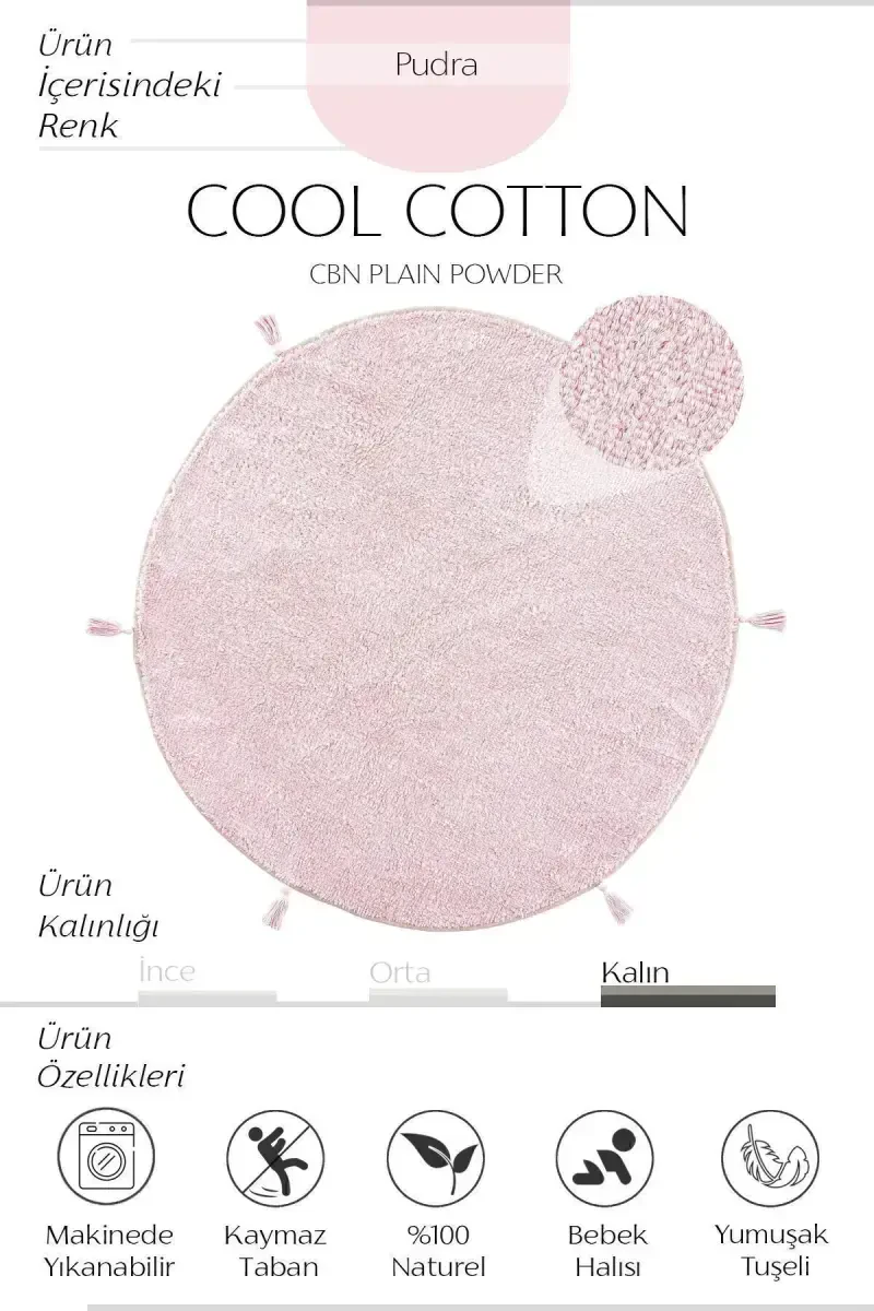 Bebek Gilami Pudra - Yuviladigan, Sirpanmaydigan Paxta - Cool Cotton CCN - Dumaloq Bolalar Gilami