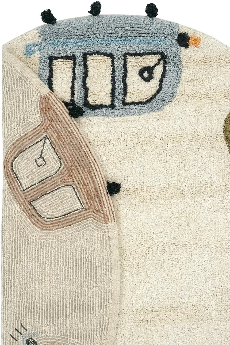 Cool Cotton Cream Baby Rug is a comfortable and safe option that warms up the play areas and rooms of little ones. This round children's rug easily adapts to any decoration with its cream color and cute car patterns. Thanks to its cotton yarn, it offers a soft touch, while its machine washable feature provides practical use. Its non-slip base increases safety by ensuring that the rug stays in place during children's active play. This 120x120 cm rug is an ideal size for baby and children's rooms. Cool Cotton rugs do not contain any substances that will harm children's health and are made of 100% natural materials. Therefore, you can safely choose it for the sensitive skin of your babies and children. Produced with tufting technique, this rug offers long-lasting use with its durable structure. The 15 mm pile height and 17 mm thickness of the rug create a soft surface where children can play comfortably. Cleaning the rug is also very easy. It can be washed in the washing machine on a delicate program and with cold water. In this way, you can easily ensure the hygiene of your rug. The non-slip base of the rug retains its properties even after washing, but hot washing and using a dryer may reduce the non-slip property. To quickly clean liquids spilled on your rug, dab with a paper towel and then wipe with cold water and natural soap. Avoid using bleaching chemicals. You can ensure long-lasting use by protecting your rug from direct sunlight and drying it laid flat. Cool Cotton Cream Baby Rug will be an indispensable part of children's rooms with its stylish design and practical features.