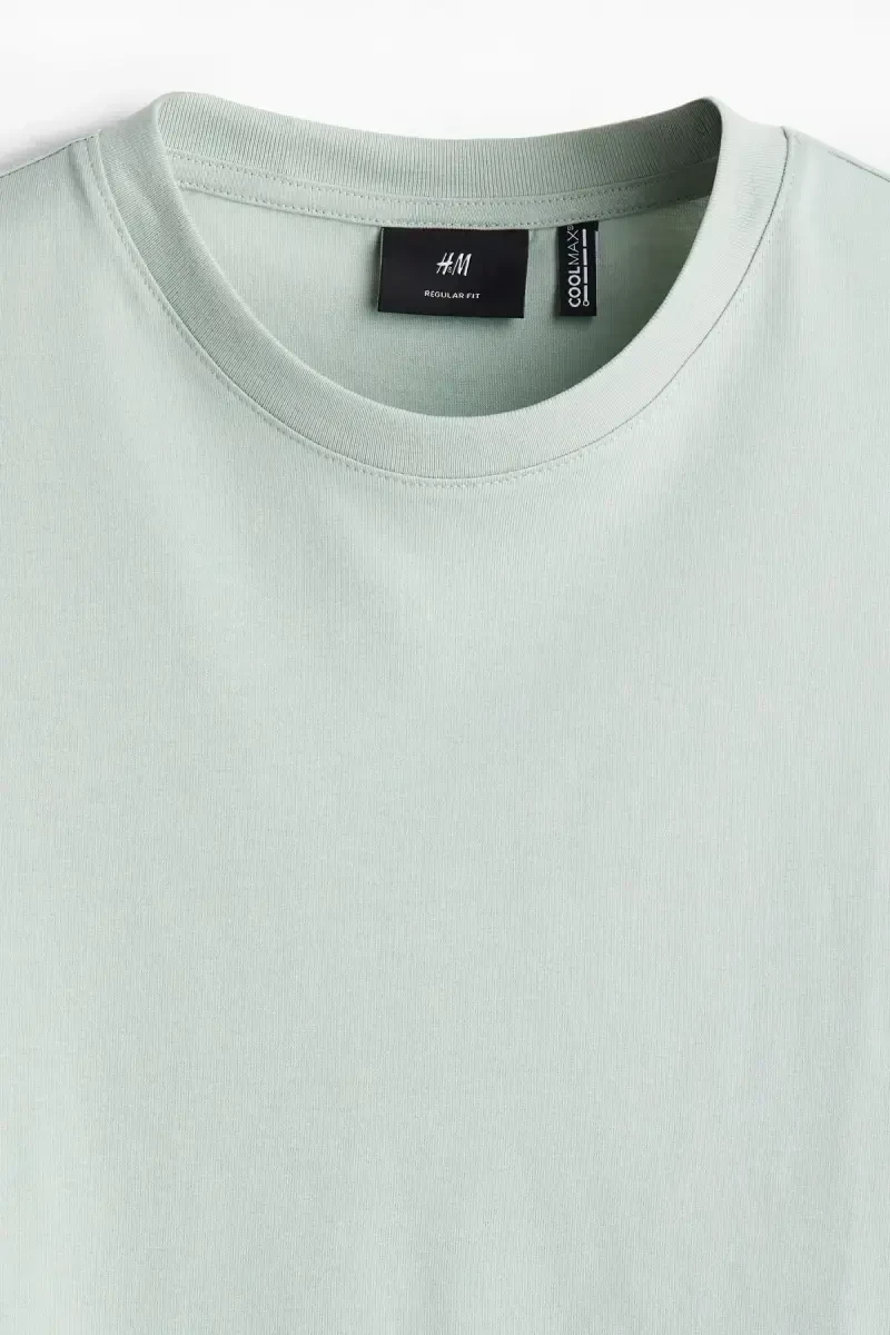 COOLMAX t-shirt, regular fit, cotton blend, crew neck, short sleeve, mint green, moisture management, daily wear, men's t-shirt, sports t-shirt