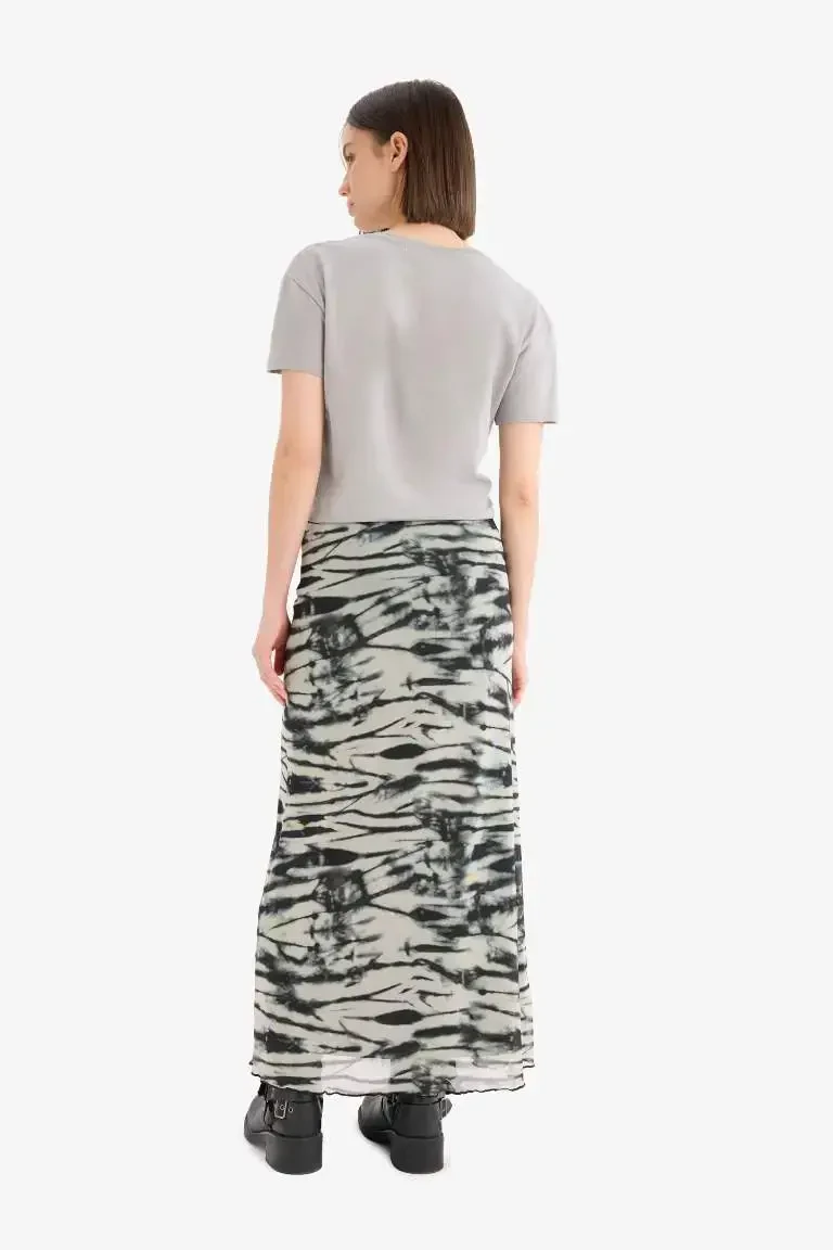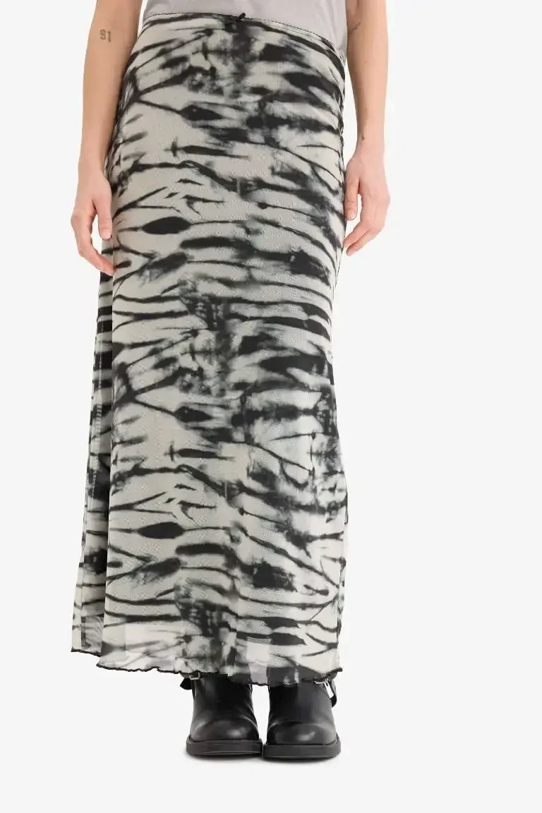 Coool Patterned Tulle Detailed Maxi Skirt | High Waist A-Line Summer Skirt