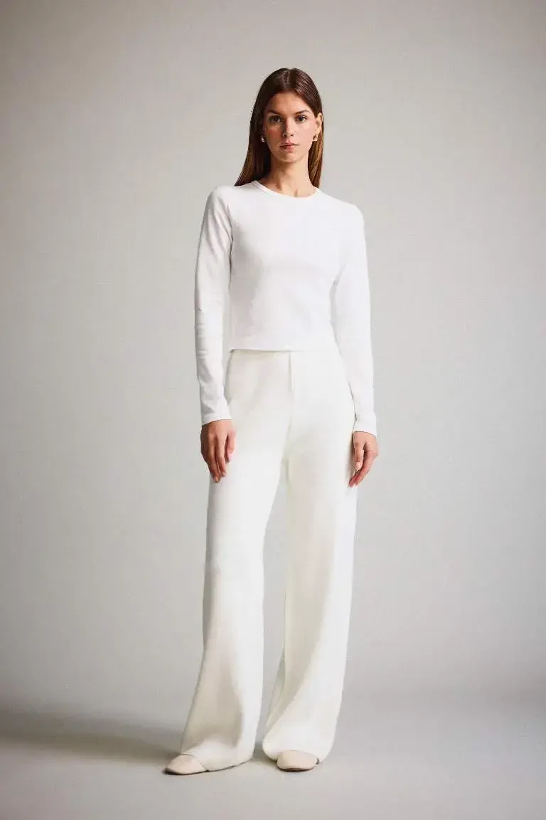 Белая футболка, футболка с длинными рукавами, футболка в рубчик, футболка облегающего кроя, базовая футболка, футболка цвета слоновой кости, приталенная футболка, крутая футболка, женская футболка, хлопковая футболка
