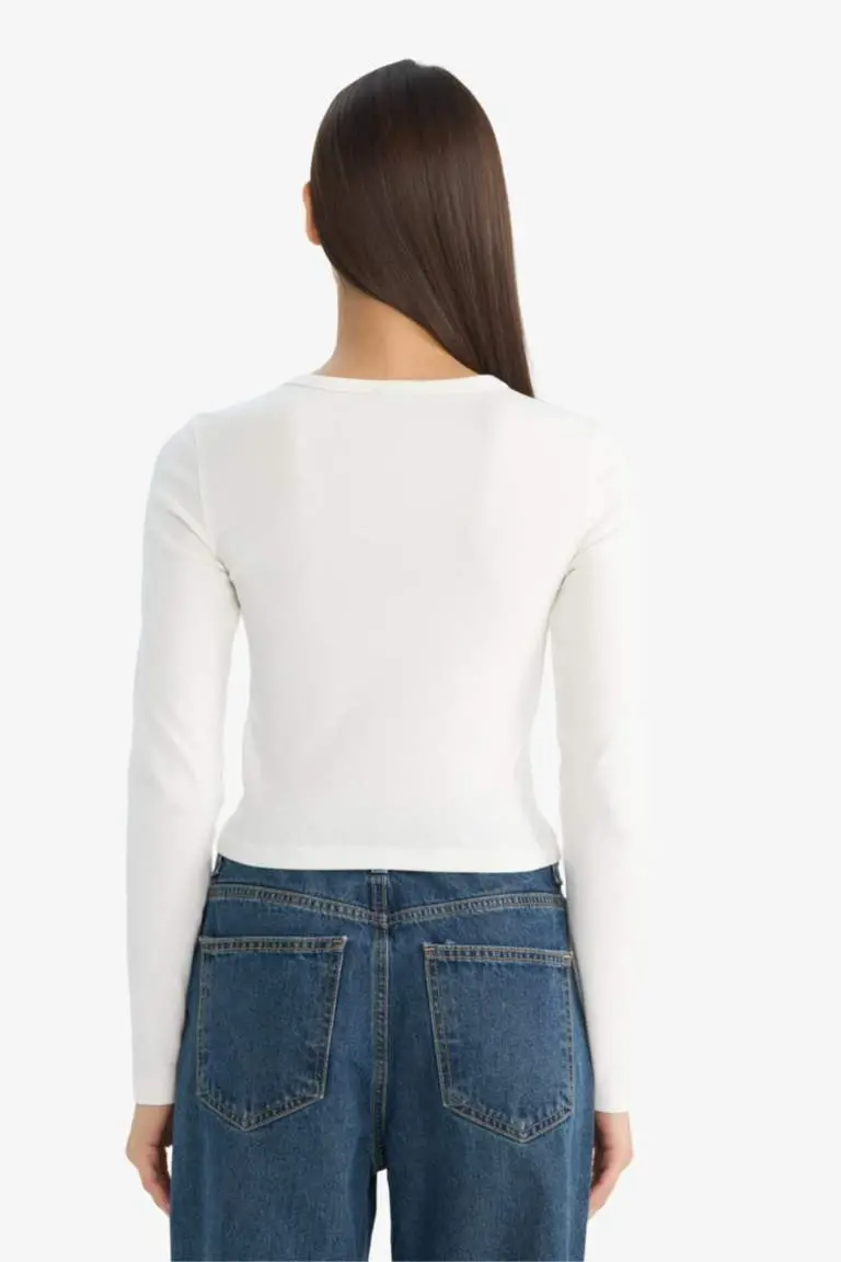 Белая Рибана Футболка с длинными рукавами | Fitted Basic Coool Футболка