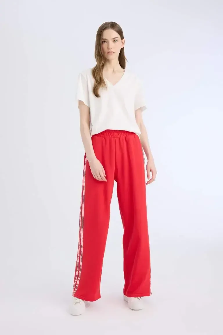Kırmızı Wide Leg Eşofman Altı | Bol Paça, Lastikli, Rahat Kesim