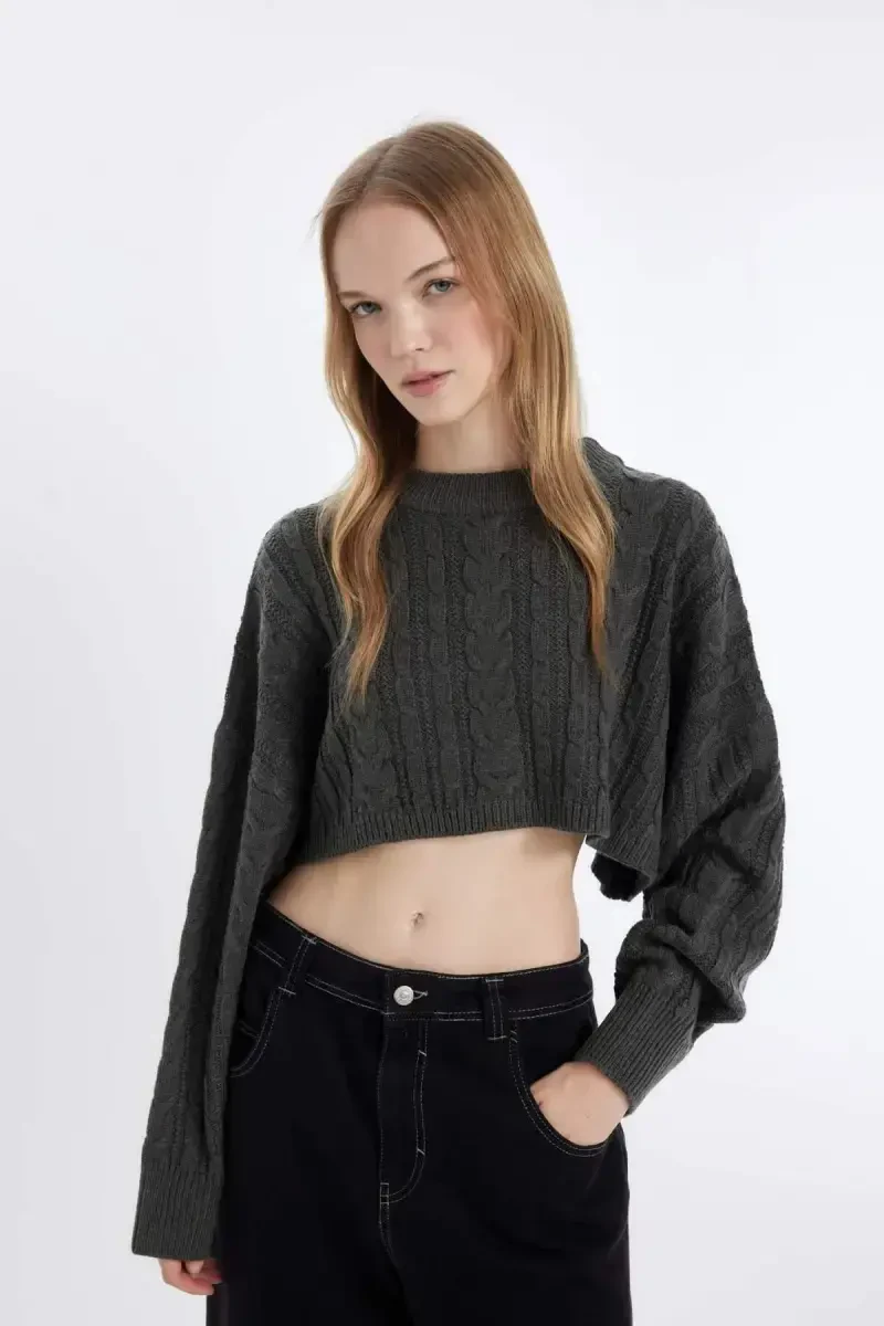 Bisiklet yoqali. Uzun yengli. Tek rang. Regular fit. Triko.