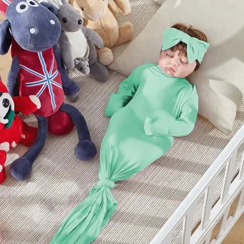Bebek Uyku Tulumu Seti: Düğümlü, Modal Kumaş, Şapka & Saç Bandı | CoozyNana