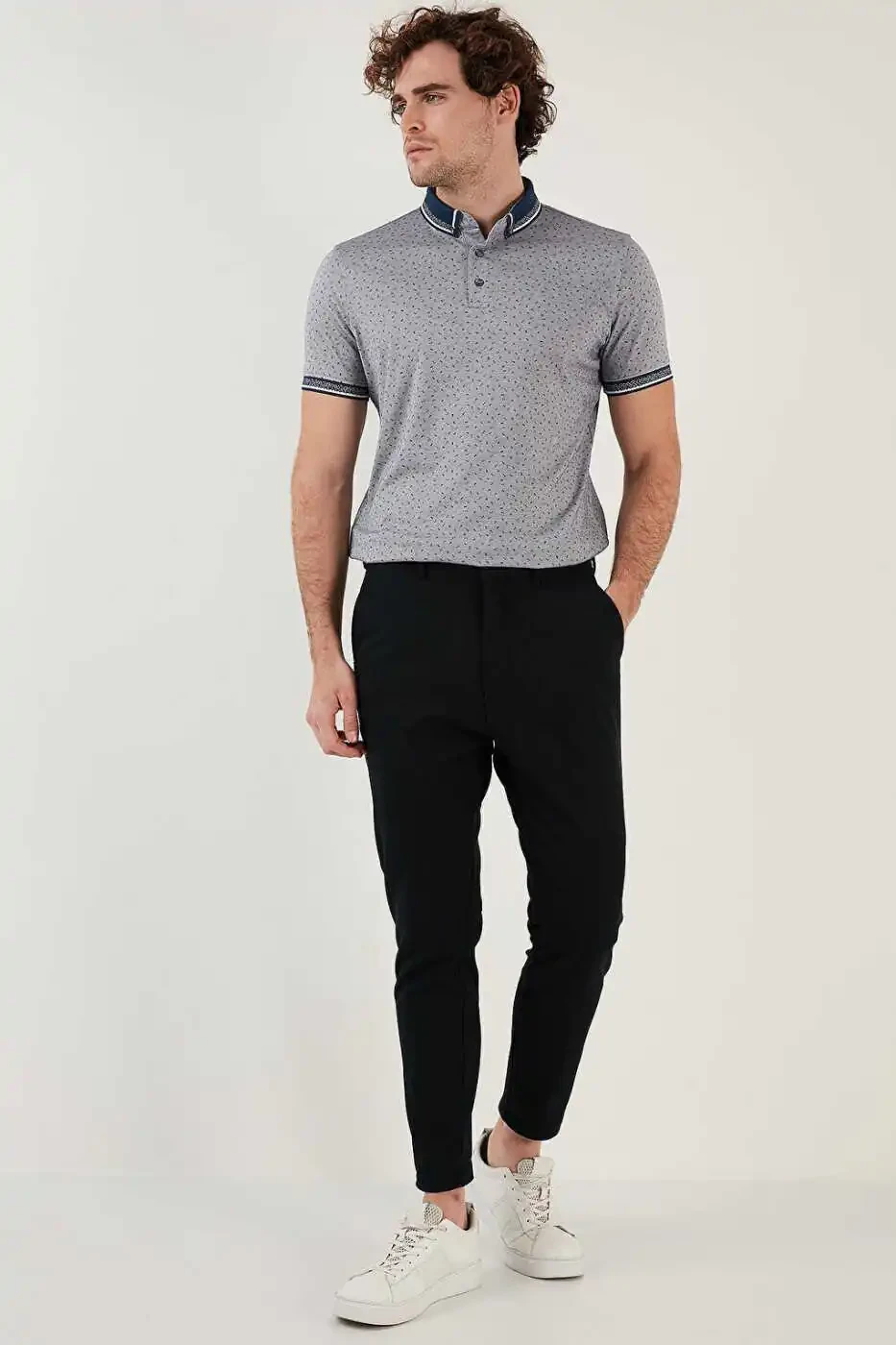 Looking for a comfortable and stylish polo t-shirt that will complete your everyday style? You've come to the right place. Made from a cotton blend fabric, this polo t-shirt will keep you comfortable all day long with its breathability and comfort. The slim fit design will fit your body perfectly, while the elegant patterns will add a touch of elegance to your style.