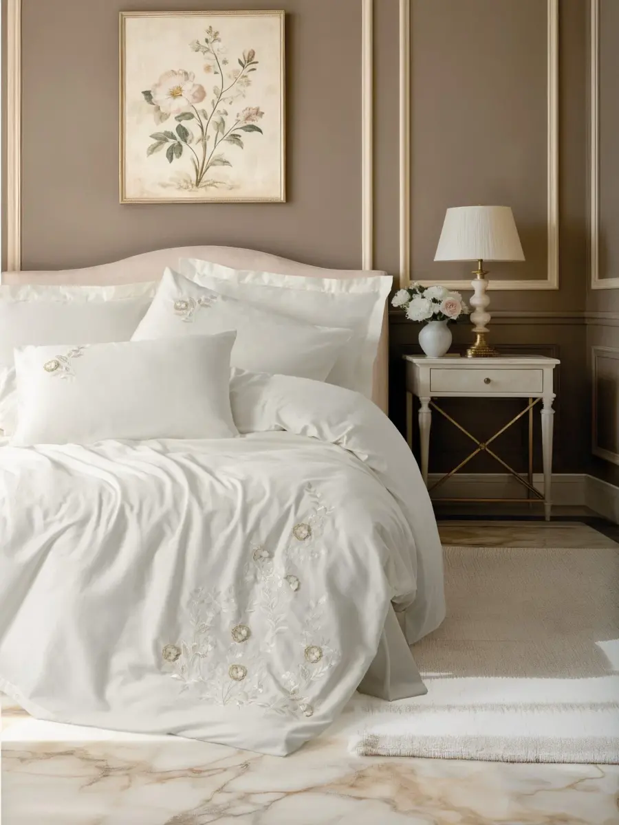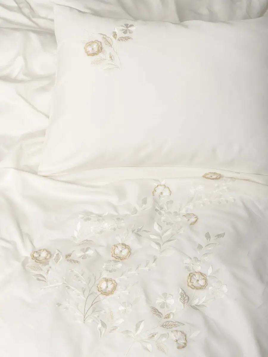 Cotton Box 3D Nakışlı Çift Kişilik Saten Nevresim Takımı Gilded Ekru