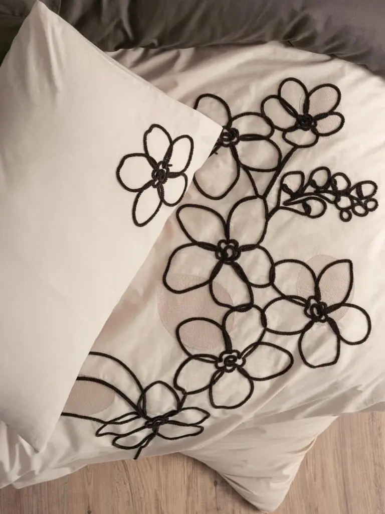 Изготовлен из хлопчатобумажной ткани. Пододеяльник: 200x220 см, Простыня: 240x260 см, Наволочка: 50x70 см (2 шт.) 100% Хлопок Ранфорс.