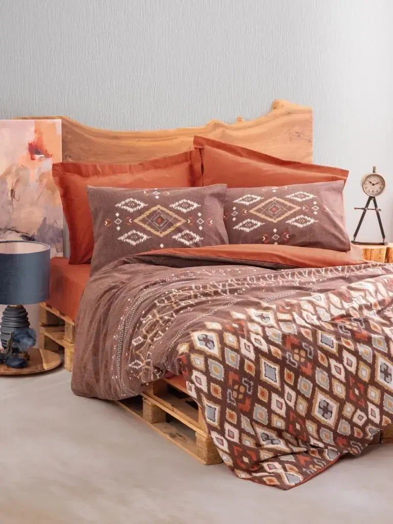 Cotton Box Etnich Toʻshak ziynati toʻplami, Jigarrang toʻshak ziynati toʻplami, 100% paxtadan toʻshak ziynati toʻplami, Etnik toʻshak ziynati toʻplami
