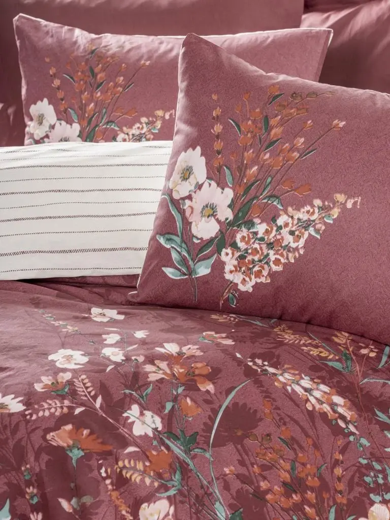 Double Bed Sheet Set, Cotton Box, Feminen, Vina Bordeaux, Bedroom Textiles