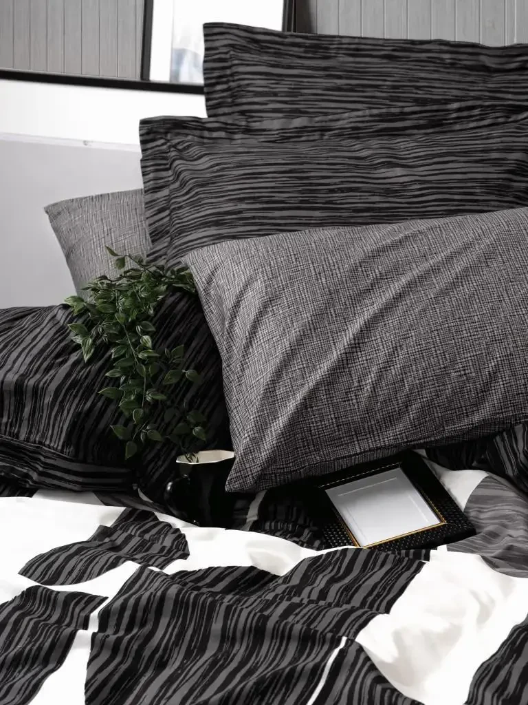 Çift kişilik nevresim takımı, antrasit rengi nevresim, modern nevresim takımı, paxtadan tikilgan nevresim, qulay nevresim