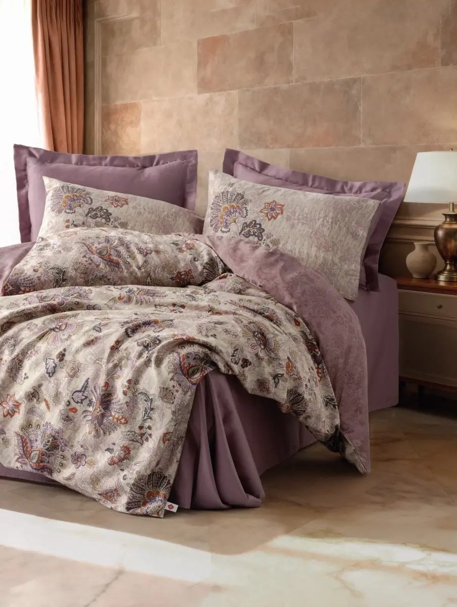 Cotton Box Saten Çift Kişilik Nevresim Takımı Majolica Mürdüm