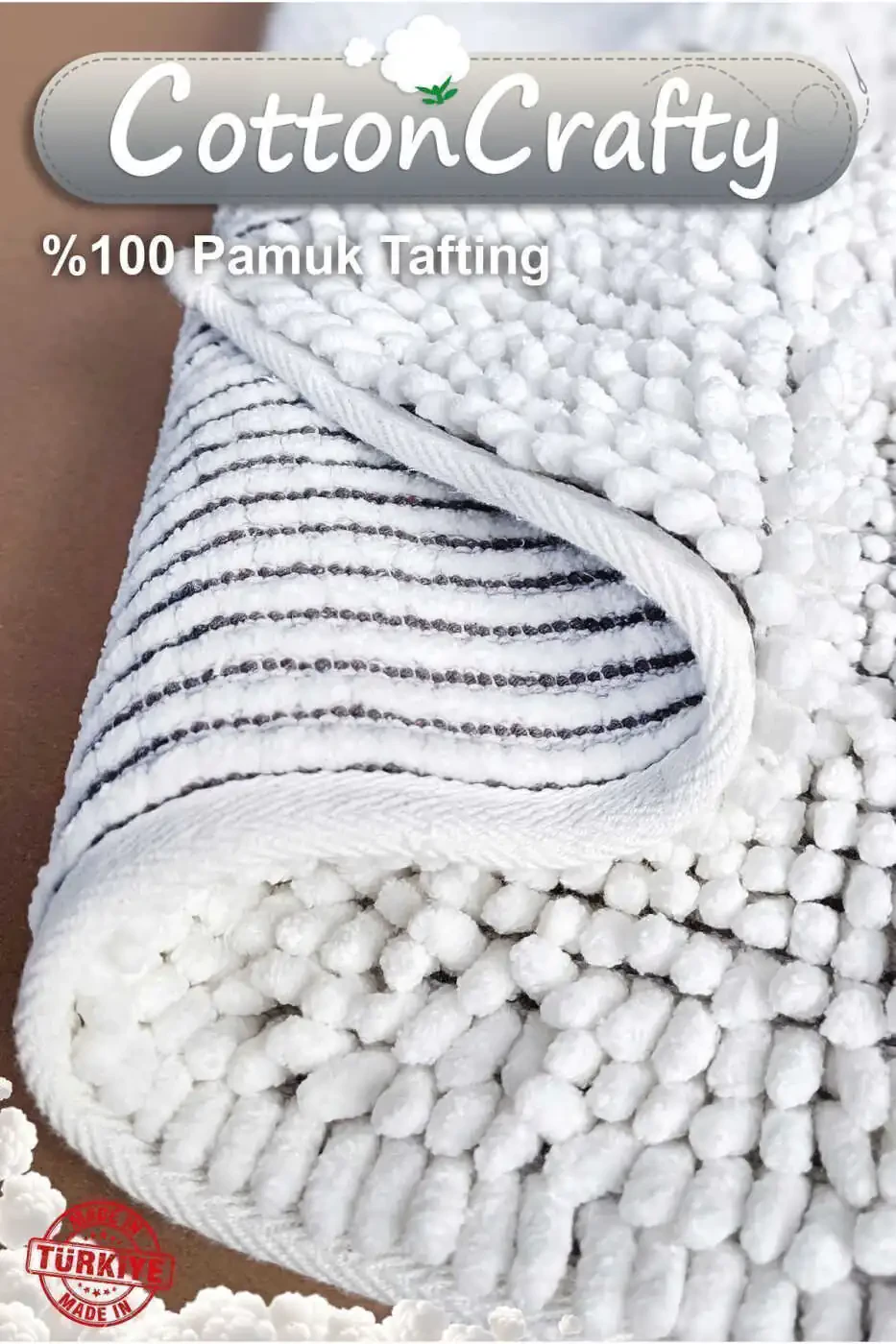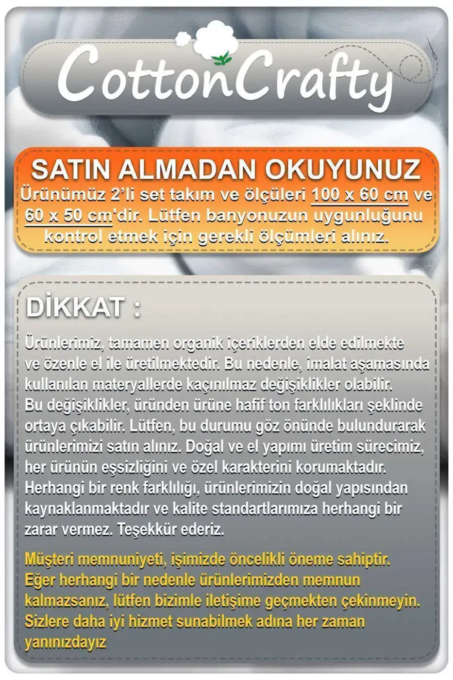 Meet the Cottonway 2-piece set, the Cotton Hand-tufted Absorbent Bath Mat Set that brings luxury and comfort to your bathroom! This stylish set, offered in two sizes – 60x100 cm and 60x50 cm – is carefully crafted from soft cotton material. With a pile height of 12 mm and above, you'll feel like you're walking on clouds. Its natural cotton composition is gentle on your skin, while its superior absorbency provides safe use on wet floors. The non-slip backing minimizes the risk of slipping, ensuring safe movement in your bathroom. With its stylish look and practical use, the Cottonway bath mat set adds a sophisticated touch to your bathroom while helping you create a hygienic and comfortable environment. It's the ideal choice to elevate the comfort and style of your home. This 2-piece set allows you to efficiently dry both large areas and the area in front of the sink. Made with high-quality materials and workmanship, the Cottonway bath mat set stands out with its durability for years of use. Order now and transform your bathroom!