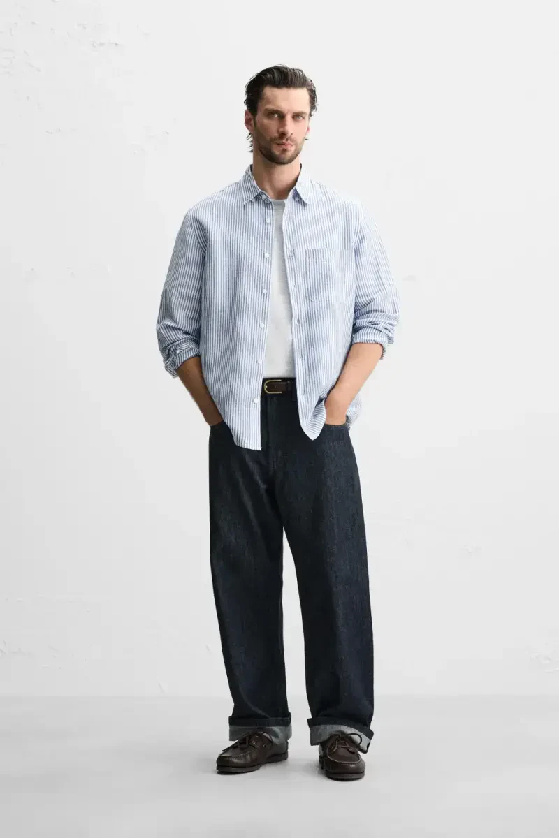 The COTTON LINEN SHIRT, which will be an indispensable part of your wardrobe, combines comfort and elegance. Designed with the refreshing harmony of blue and white, this shirt keeps you cool in hot weather and allows you to maintain your style. Made from a blend of linen and cotton, it offers both breathability and durability. The relaxed fit of the shirt ensures a comfortable wearing experience all day long. This shirt, which you can easily choose in daily life or on a special day, is an ideal choice for those looking for elegance and comfort together. The button-down collar allows you to make different combinations, while the buttoned cuffs offer a classic look. With its long sleeves, it can be worn in all seasons, and it also offers a functional detail with the patch pocket on the chest. Thanks to its button-down closure, it can be easily put on and taken off. The COTTON LINEN SHIRT is an investment that will remain in your wardrobe for many years with its quality fabric and careful workmanship. This shirt not only makes you look stylish but also makes you feel good. You can use the shirt to create a sporty style with jeans or to achieve a more classic look with elegant trousers. This shirt, which will easily match your accessories, creates a perfect base for you to reflect your style. Enjoy both comfort and elegance with the COTTON LINEN SHIRT. This shirt, which will accompany you in daily use as well as on special occasions, will always make you look stylish. Designed with the unique harmony of blue and white, this shirt is a candidate to be the most loved piece of your wardrobe. This shirt, where care and quality are felt in every detail, offers long-lasting use and allows you to enjoy comfort without sacrificing your style. The COTTON LINEN SHIRT is not just a piece of clothing, but also a lifestyle.