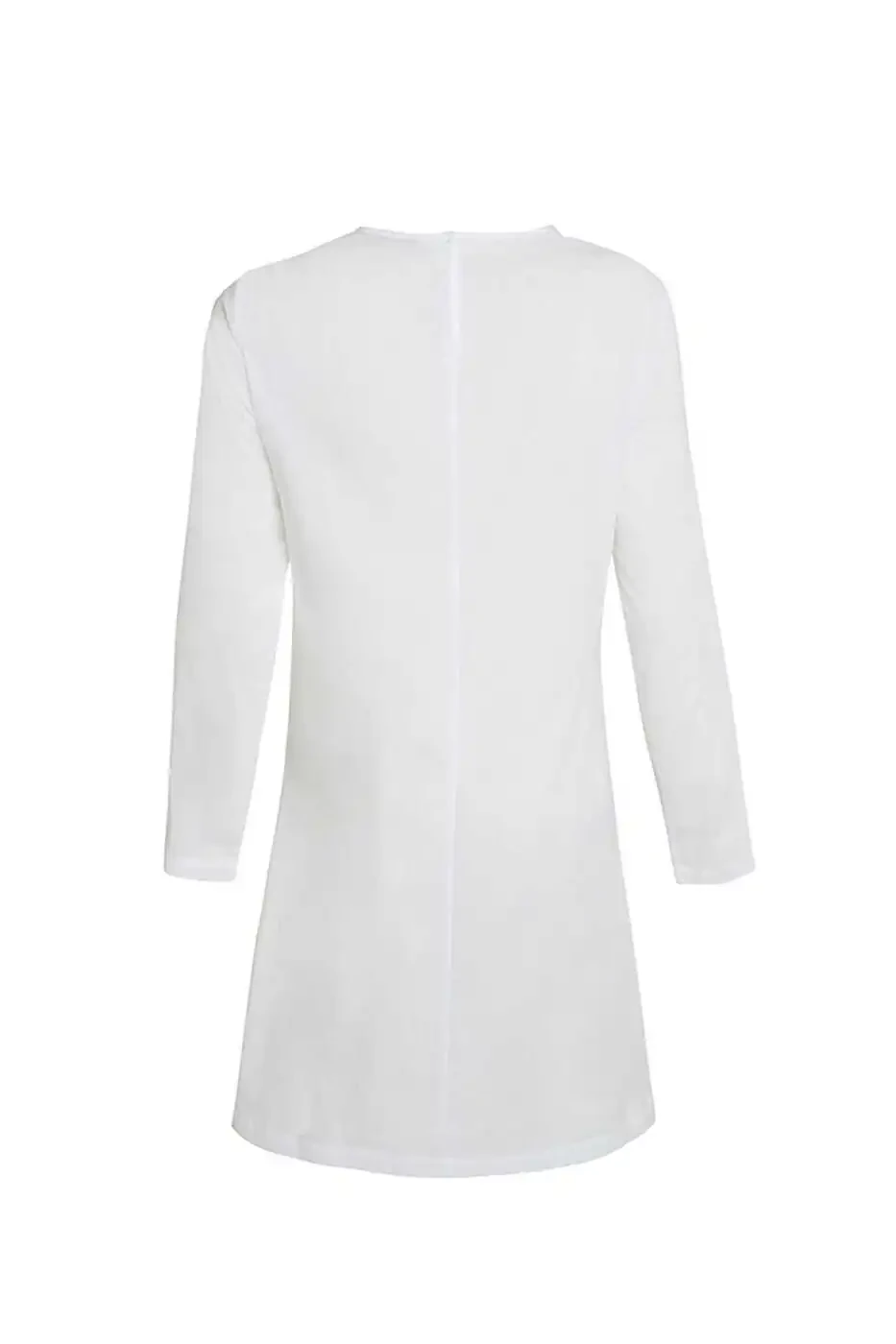 Made of cotton fabric. It is white. It is a tunic with a petticoat model. It has a comfortable fit. Suitable for daily use.
