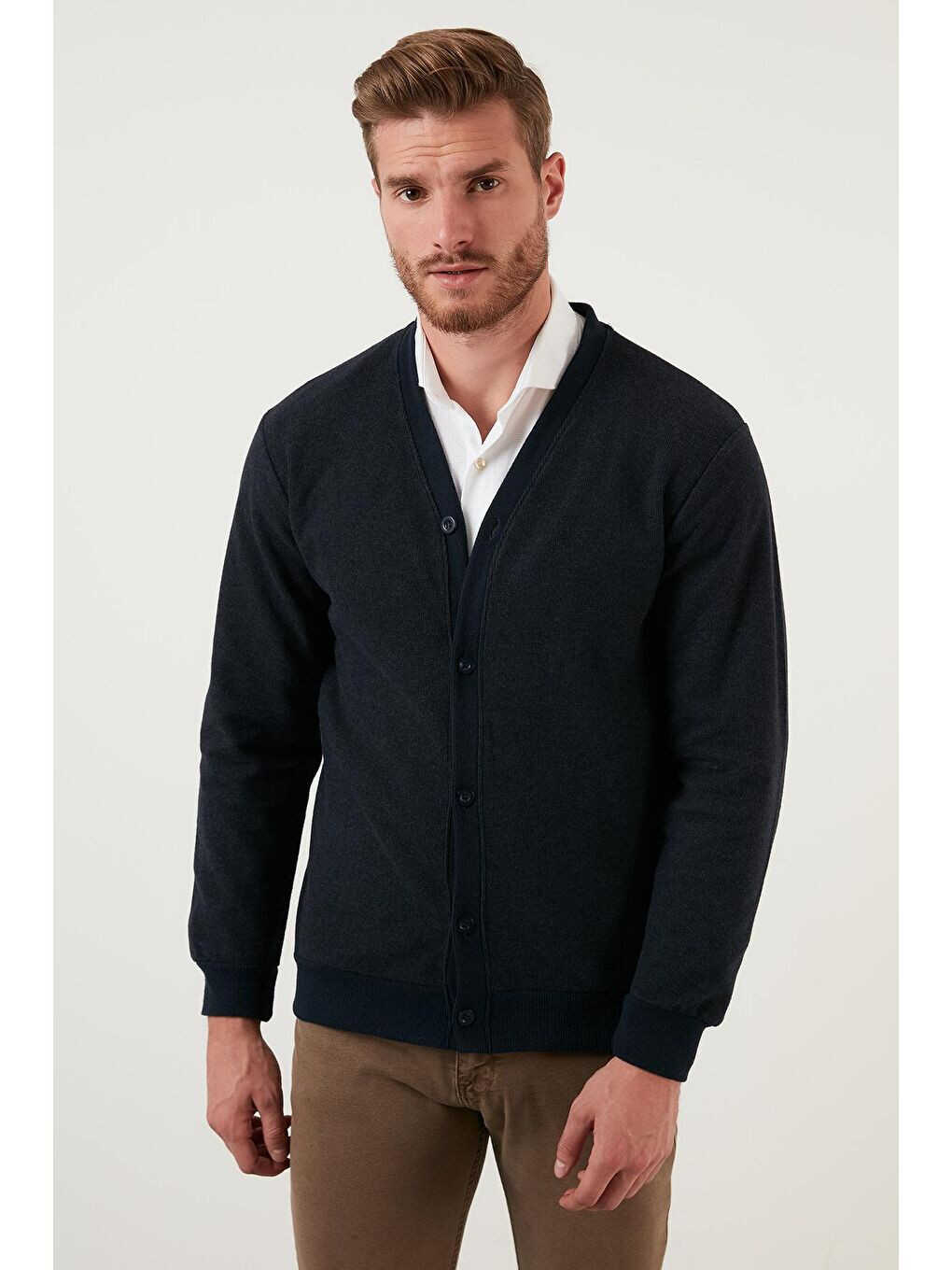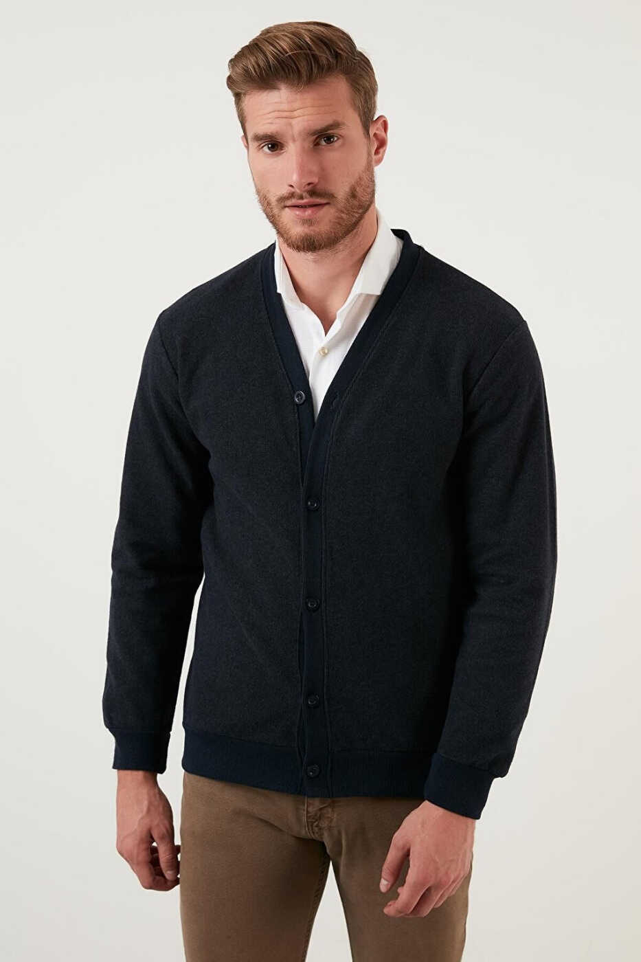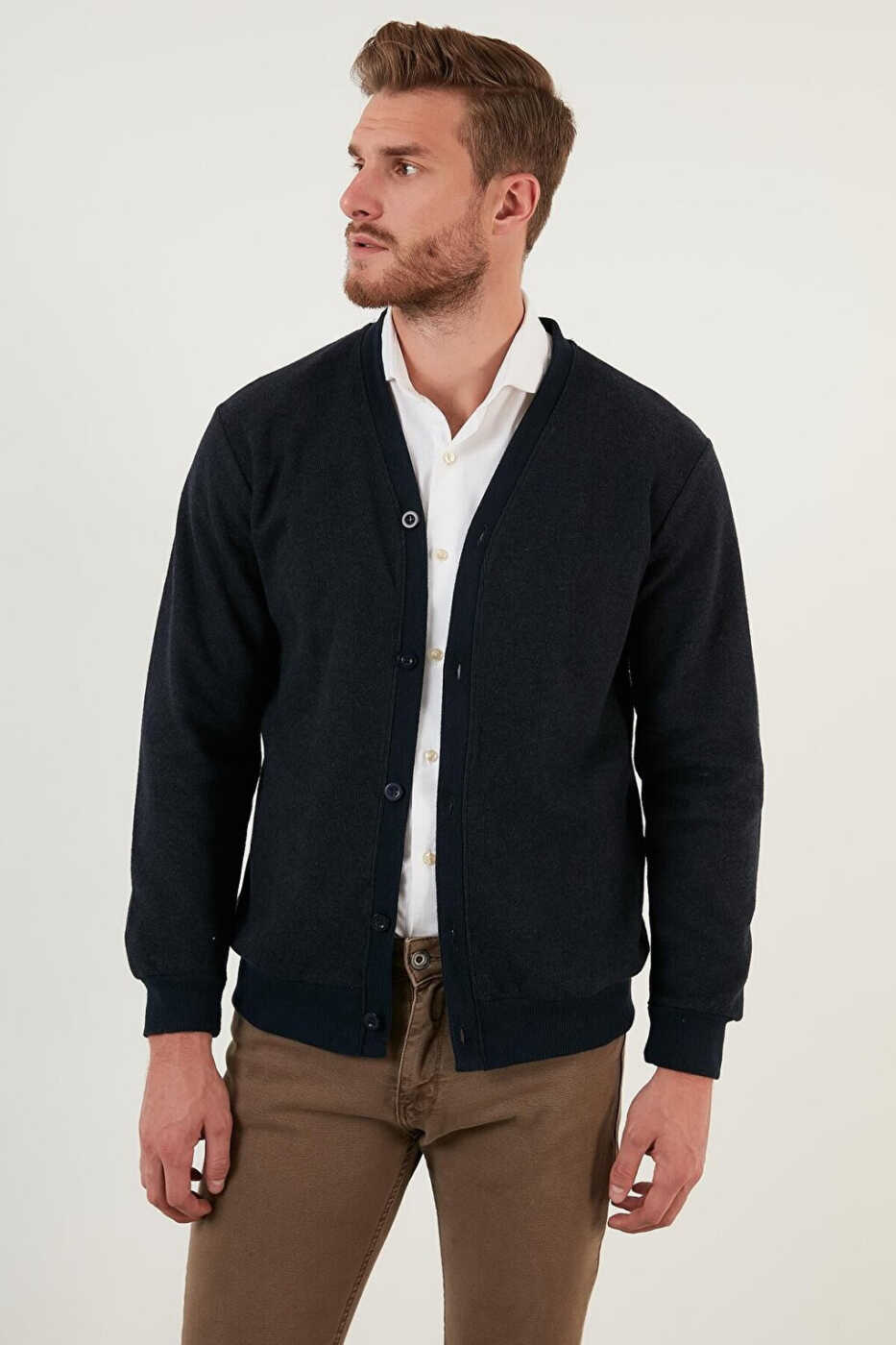 The Cotton Regular Fit Buttoned V-Neck Cardigan 456205 adapts to every style with its design that combines practicality and elegance. Order now to add style and comfort to your wardrobe.