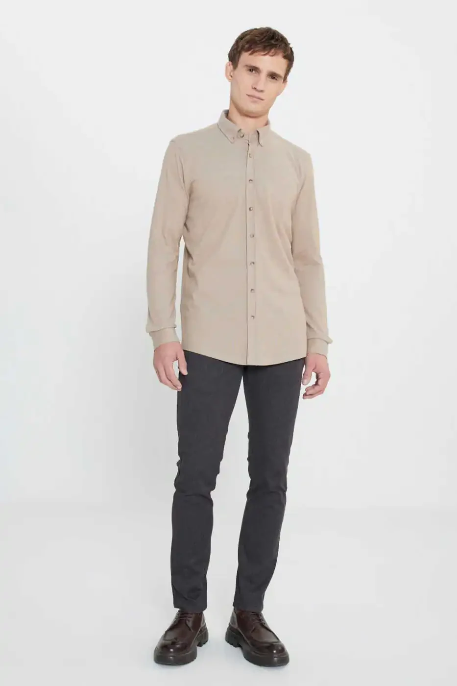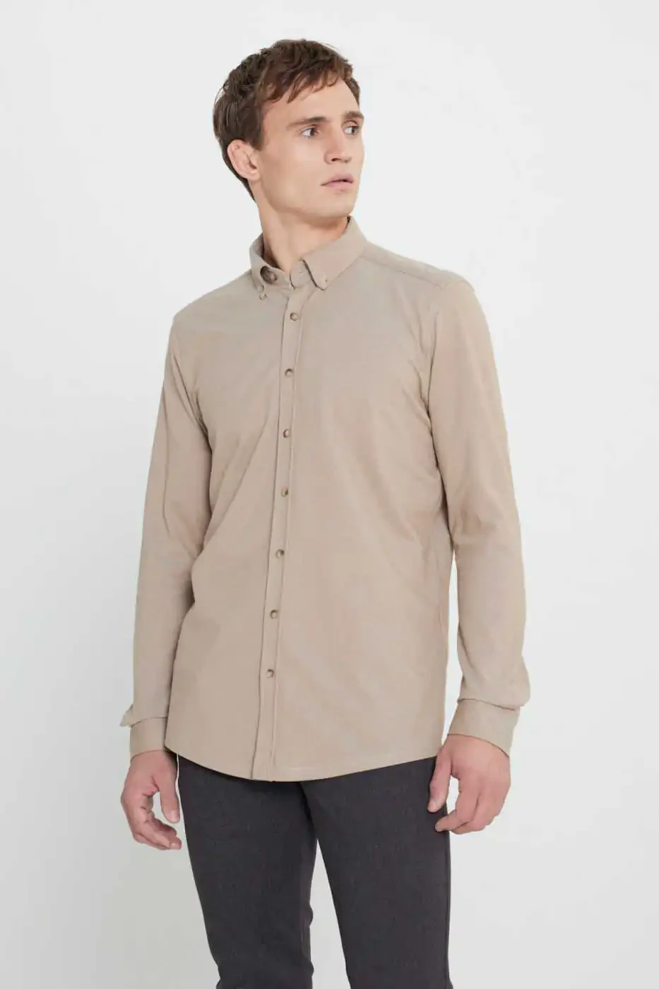 Cotton Slim Fit Narrow Cut Button-Down Collar Shirt, which will be an indispensable part of your wardrobe, combines elegance and comfort. Whether in business life or daily use, this shirt, which will allow you to reflect your style in any environment, offers a modern and fit look. Thanks to its 100% cotton fabric, it provides comfort throughout the day and prevents sweating with its breathable structure. The slim fit cut fits your body perfectly and creates a more dynamic and attractive silhouette. The button-down collar adds a classic and sophisticated air and is suitable for use with different combinations. You can create a casual style with jeans or a more formal look with fabric trousers. The fabric of the shirt is specially selected for long-lasting use and is resistant to fading. Stitching details are meticulously crafted, increasing the quality and elegance of the shirt. This shirt is not just a piece of clothing, but also a way to express your style. If you want to feel special and always look stylish, the Cotton Slim Fit Narrow Cut Button-Down Collar Shirt is for you. This shirt, which appeals to every taste with its different color and size options, is a candidate to be the most loved piece of your wardrobe. Whether you buy it for yourself or give it as a gift to your loved ones, this shirt will always be the right choice. Take your style to the next level with the Cotton Slim Fit Narrow Cut Button-Down Collar Shirt, which offers elegance, comfort and quality together.