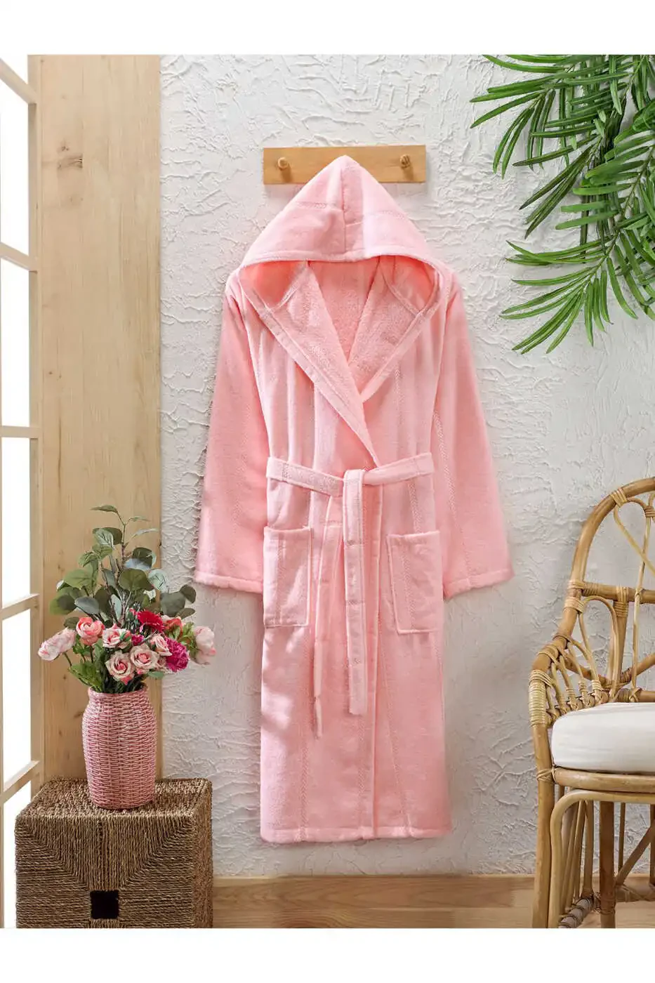 Indulge in luxury and comfort! Experience an at-home spa experience with the Semecca Cotton Velvet Hooded Unisex Powder Bathrobe. Made from soft cotton yarn, this robe boasts high water absorption, allowing you to fully enjoy drying off after a shower. Its elegant velvet exterior, combined with its soft cotton lining, offers unparalleled comfort. The hooded design eliminates the need for an extra towel, saving you time with its practical use. The powder color combines elegance and sophistication, making it an ideal choice for both women and men. Thanks to its high-quality fabric, it won't stiffen or fade after washing, maintaining its softness and color for years to come. Produced in accordance with Turkish standards, it offers a perfect fit with available size options. Order now to experience this unique comfort and treat yourself!