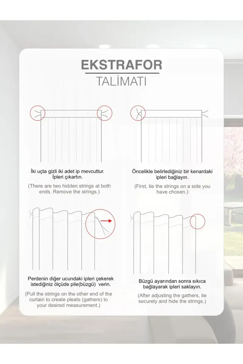 If you want to add a natural touch to your home and create an elegant atmosphere at the same time, the Cream Color Linen Look Plain Tulle Curtain is just for you! This curtain is made of 100% polyester fabric and adds warmth and elegance to your space with its linen look, while emphasizing simplicity with its plain pattern. This tulle curtain, which offers long-lasting use thanks to its high-quality fabric, helps you create a pleasant ambiance in your home by filtering the sunlight. Whether it is a children's room, living room, kitchen or bedroom, this curtain, which can easily adapt to any space, will add value to your home's decoration. It will reach you carefully sewn and ironed by experienced tailors with the assurance of the Perle brand. In addition, thanks to its easy installation feature, you can hang it on your cornices immediately and instantly change the atmosphere of your home. Moreover, thanks to the extrafor on the back of the curtain, you can use it plain or pleated if you wish. For pleated use, it is recommended to purchase a curtain with a width twice the size of your window. In this way, your curtain will look fuller and more impressive. Our linen tulle curtain models are produced in our high-quality standard production facilities equipped with the latest technology, which are exported to world markets. With our 100% customer satisfaction-oriented approach, we also offer after-sales support. If you have any questions or requests, please do not hesitate to contact us. Our product is a single panel; if you need a double panel, you need to order two of the same size. The package includes one tulle curtain and two cornice stoppers. In this way, you can easily install and start using your curtain.