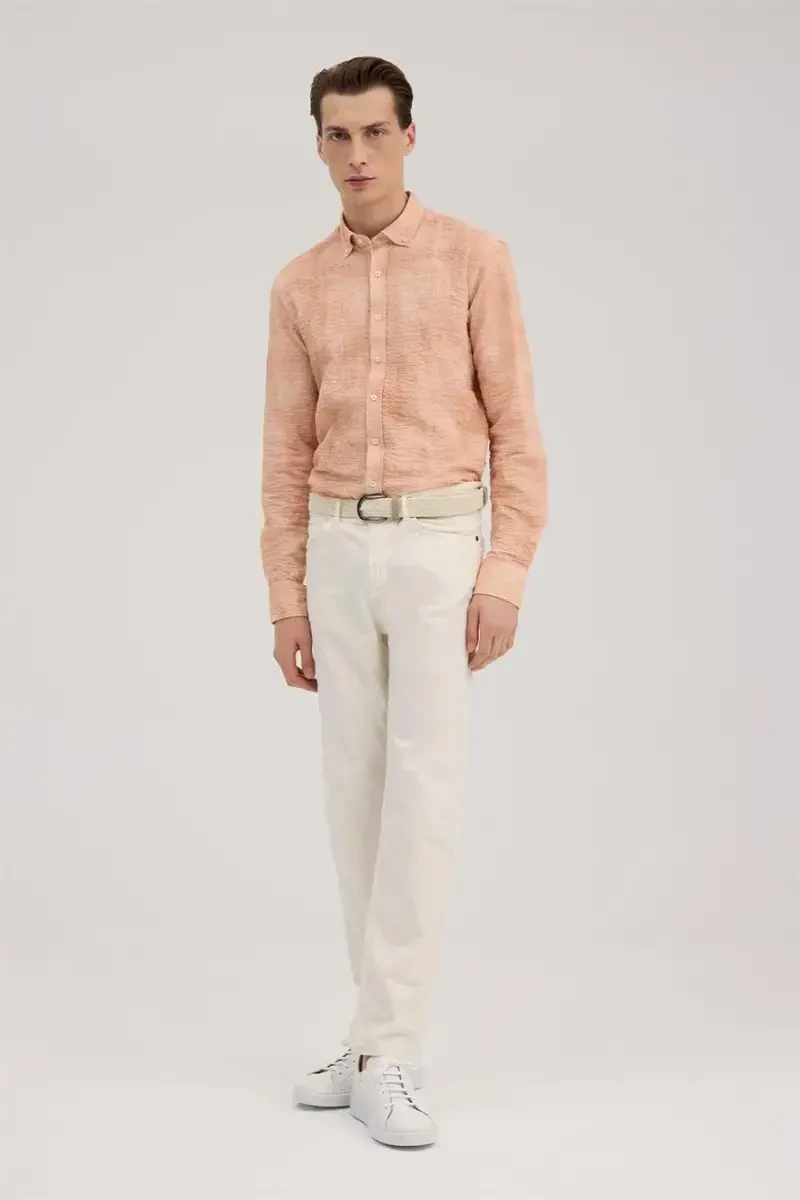 Experience elegance and comfort together with Cream Slim Fit 5 Pocket Sports Trousers. This trouser, which will accompany you in daily wear and sports activities, will be an indispensable part of your wardrobe with its modern cut and comfortable fabric. This trouser, which you can choose for weekend comfort or a stylish look in the city, is designed to adapt to any environment. The cream color allows you to make different combinations, while the slim fit cut gently reveals your body lines.Feel comfortable and free all day long thanks to the high-quality TENSEL (TENCEL), COTTON and ELASTANE blend. The softness and breathable structure of TENSEL (TENCEL) fabric provides comfort without irritating your skin. COTTON increases the durability of the trousers, while ELASTANE does not restrict your movements thanks to its flexibility. This special fabric blend ensures that the trousers are long-lasting and maintain their shape.Its 5-pocket design offers both a stylish look and allows you to carry your belongings safely. It offers practical use with front pockets, back pockets and a special pocket detail for your small items. Stitching details and quality workmanship emphasize the elegance and durability of the trousers. You can create a casual style by combining it with a t-shirt and sneakers in daily use, and you can achieve a more stylish look by combining it with a shirt and stylish shoes on special occasions.Cream Slim Fit 5 Pocket Sports Trousers are an ideal choice for men who want to have style and do not want to compromise on comfort. You can easily combine it with other pieces in your wardrobe and create different styles. Moreover, thanks to its easy care, you can use it like the first day for a long time. By following the washing instructions, you can extend the life of your trousers and always look stylish and well-groomed. These trousers are not just a piece of clothing, but also a lifestyle. Value yourself and reflect your style with Cream Slim Fit 5 Pocket Sports Trousers.
