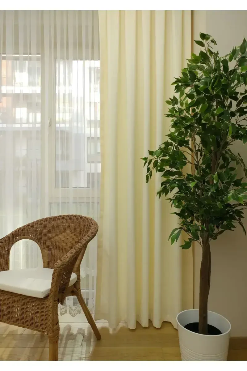 Bring elegance and style to your home with the Evdepo Home Cream Plain Color Curtain. This single-panel curtain offers a modern and simple look thanks to its plain, non-pleated stitching and buckram gathering, and its cream color easily complements any decor. Made from a blend of 35% cotton and 65% polyester, the 1st class curtain-like honeycomb velvety fabric offers both durability and aesthetic appearance. It also provides ease of use with its stain-resistant and non-ironing properties. Your curtain adds warmth and invitation to your home, while also helping you control the light in your room. Whether you use it in your living room, bedroom or dining room, this curtain will add a sophisticated touch to your living spaces. The product is sent ready to use with cornice buttons sewn on, so you can easily assemble it. You can also achieve a stylish look with the curtain tie that comes with the curtain. Remember, you need to add 2 items to your cart to order two panels. This curtain, produced with Evdepo Home quality, is a long-lasting and useful option. It is also very practical to care for, as it does not require ironing when washed at 30 degrees and hung damp, and is suitable for washing with colored product detergents. The Cream Plain Color Curtain is an ideal choice to change the atmosphere of your home and increase your comfort. Please note that there may be a 5% - 10% tone difference in the product color due to the fact that the fabric roll is dyed in different vats as it changes. Therefore, we recommend that you order the products to be ordered in the same room in one go. Please do not hesitate to contact us for any questions. Evdepo Home continues to offer quality and stylish products by prioritizing customer satisfaction. Choose the best for your home, make a difference with Evdepo Home. The honeycomb texture of the curtain adds a pleasant atmosphere to the environment, while its velvety surface enriches the feeling of touch. This curtain is not just a window covering, but also an important part of your home's decoration. It is a stylish and elegant detail that your guests will admire. Create a warm, friendly and inviting atmosphere in your home with the Evdepo Home Cream Plain Color Curtain. This curtain will add value to every corner of your home and increase your quality of life. The product reaches you in its carefully prepared packaging and you can start using it safely without any damage.