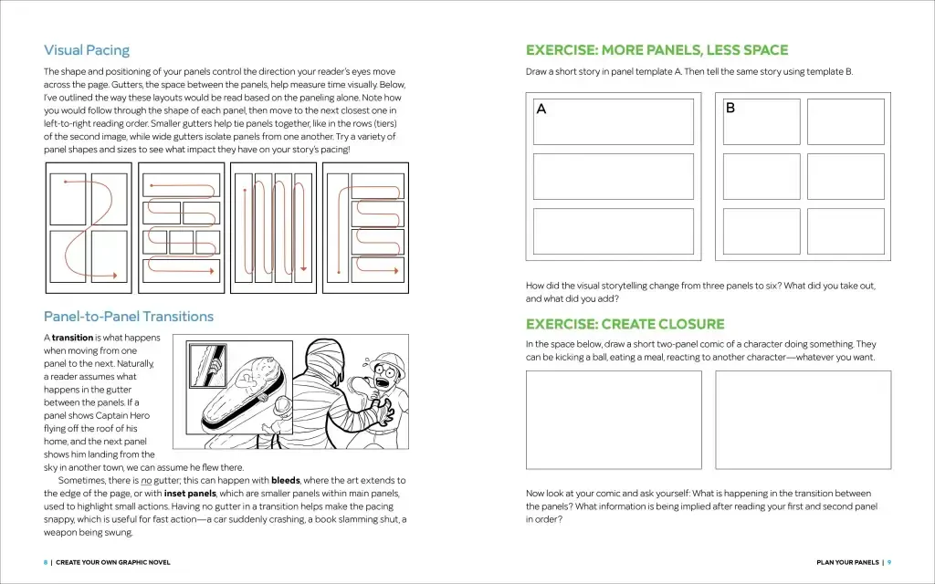 If you're looking for a fun and educational book to help children unleash their imagination and creativity, you've come to the right place! With "Create Your Own Graphic Novel: A Guide for Kids: Write and Draw Your Own Book," children aged 8-12 will experience the thrill of creating their own comic books. Pirate adventures, mystery stories, fantasy tales... every story they can imagine can be transformed into a captivating graphic novel. This book allows children to discover the power of storytelling by combining writing, drawing, and imagination. Children will learn to work like professional comic book artists, practicing techniques such as creating story outlines, planning transitions between panels, and much more. They will learn step-by-step how to create a comic book from start to finish and will be able to fill over 50 pages of blank comic book panels with their own stories as they wish. They will learn to bring their comics to life by adding details such as speech bubbles, sound effects, inking, and coloring. Whether they want to create a new superhero, build a world of talking animals, or share real-life stories, all they need is this blank comic book and, of course, their own creativity!