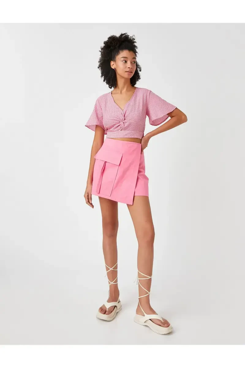 PRODUCT DESCRIPTION = Crop Blouse V Neck Window Detailed Patterned. 100% Cotton. Model Measurements: Height: 1.75, Bust: 80, Waist: 60, Hips: 90. Mannequin Size: S/36/1.Product DescriptionOur Crop Blouse V Neck Window Detailed Patterned model is a candidate to be an indispensable part of your wardrobe! This blouse, which stands out with its modern design and stylish details, is an ideal choice for both daily use and your special days. The V-neck and window detail add a feminine touch, while the patterned fabric will add originality to your style. Thanks to its high-quality 100% cotton fabric, you will feel comfortable all day long. Whether you combine it with jeans for a sporty chic look, or with skirts for a more elegant look. This blouse, which will help you reflect your style in the best way in any case, is a must-have piece in your wardrobe.Product features* Crop design* V-neck* Window detail* Patterned fabric* 100% CottonAdditional InformationModel Measurements: Height: 1.75, Bust: 80, Waist: 60, Hips: 90. Mannequin Size: S/36/1. Please follow the washing instructions on the label to use your product for a long time.