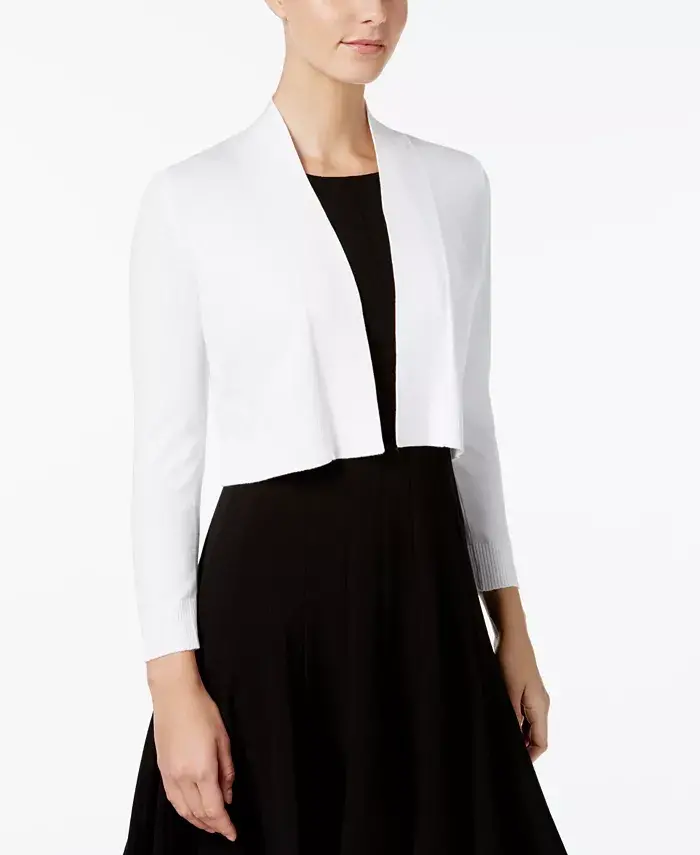 Offering a seasonal style from Calvin Klein, the open-front cropped cardigan is perfect for when you need an extra layer. This stylish and versatile cardigan is a piece you can easily use in both casual and more special moments. With its soft texture and modern cut, it is a candidate to be an indispensable part of your wardrobe. The open-front design allows it to be easily combined with different tops, while the rib knit details add elegance to its elegance. Three-quarter sleeves offer an elegant look without restricting your freedom of movement. Its short cut ends above your waist, highlighting your body lines and creating a modern silhouette. Whether you combine it with jeans, skirts or dresses, it will always be a piece that complements your style. Stay stylish in any environment, whether at the office, at dinner or on a weekend outing. Produced with Calvin Klein quality, this cardigan offers long-lasting use. Model measurements: Height: 178 cm, Bust: 80 cm, Waist: 61 cm, Hips: 89 cm. Model is wearing Small size. Cardigan length is approximately 49.5 cm (for Small size). This measurement may vary depending on the size.
