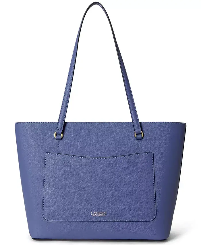 The Karly tote is crafted with crosshatch leather for subtle texture and refined style. Detailed with a metal "LRL" logo at the front for a signature Lauren Ralph Lauren touch. Medium sized bag; 13"W x 9"H x 4-1/4"D (width is measured across the bottom of handbag); 1.26 lbs. approx. weight Silhouette is based off 5'9" model 8-3/4" top handles Zip closure Gold-tone hardware & exterior slip pocket Interior zip pocket & slip pocket Tablet compatible (std. size 8"-10") Dust bag included Shell and trim: leather; lining: polyester Professionally leather clean Imported