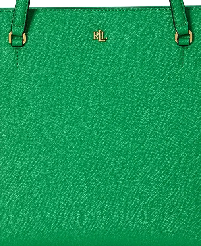 The Karly tote is crafted with crosshatch leather for subtle texture and refined style. Detailed with a metal "LRL" logo at the front for a signature Lauren Ralph Lauren touch. Medium sized bag; 13"W x 9"H x 4-1/4"D (width is measured across the bottom of handbag); 1.26 lbs. approx. weight Silhouette is based off 5'9" model 8-3/4" top handles Zip closure Gold-tone hardware & exterior slip pocket Interior zip pocket & slip pocket Tablet compatible (std. size 8"-10") Dust bag included Shell and trim: leather; lining: polyester Professionally leather clean Imported