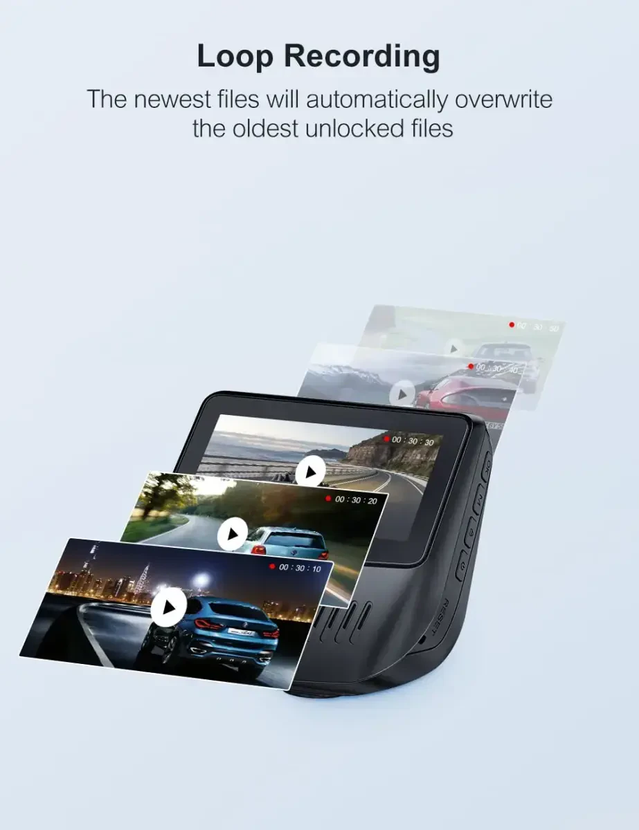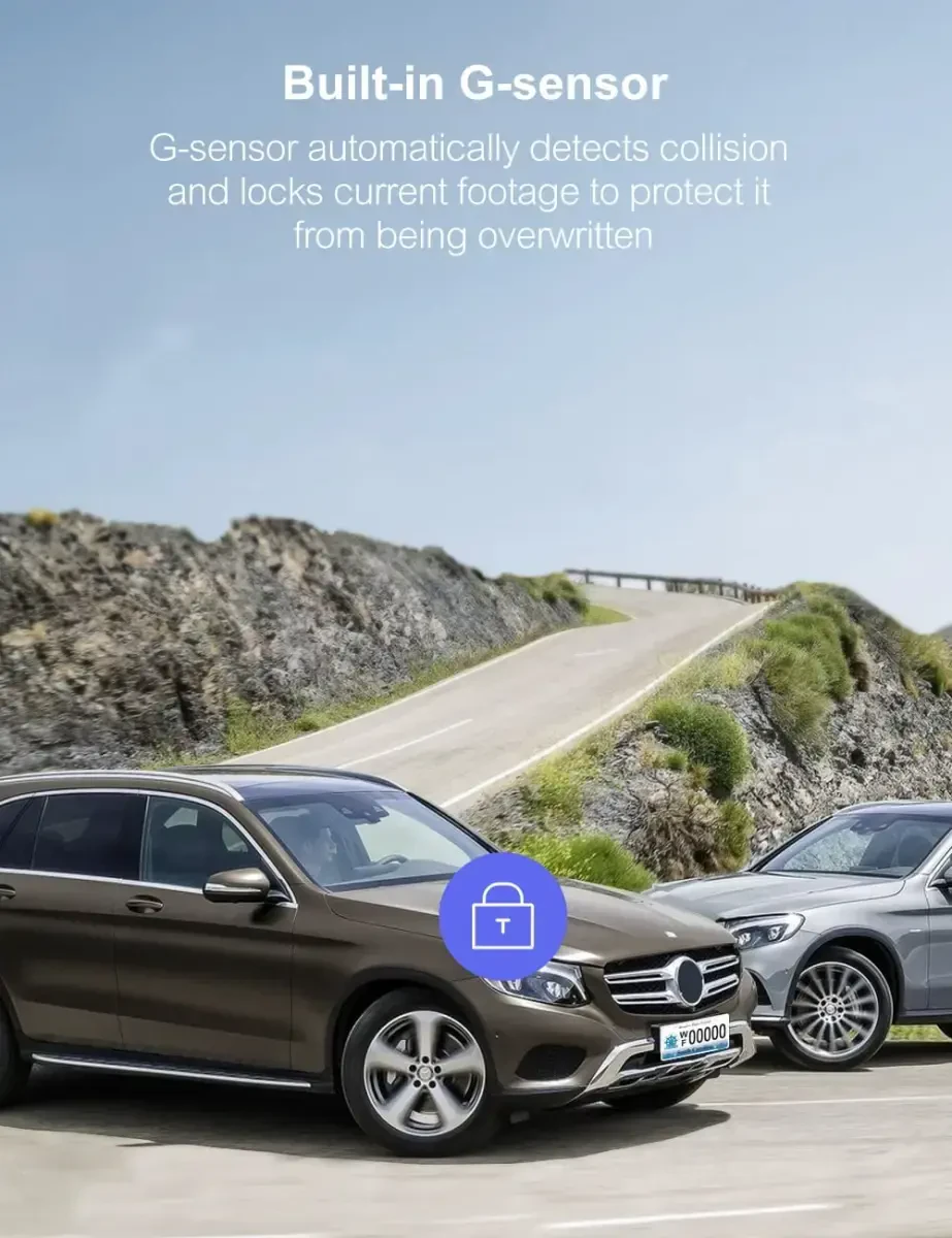 • Ички G-сенсор: Тўсатдан тормозлаш ёки тўқнашув вақтида автоматик равишда ёзувни блокировка қилиб, ҳалокат вақтига оид ёзувларнинг ўчирилишини олдини олади.