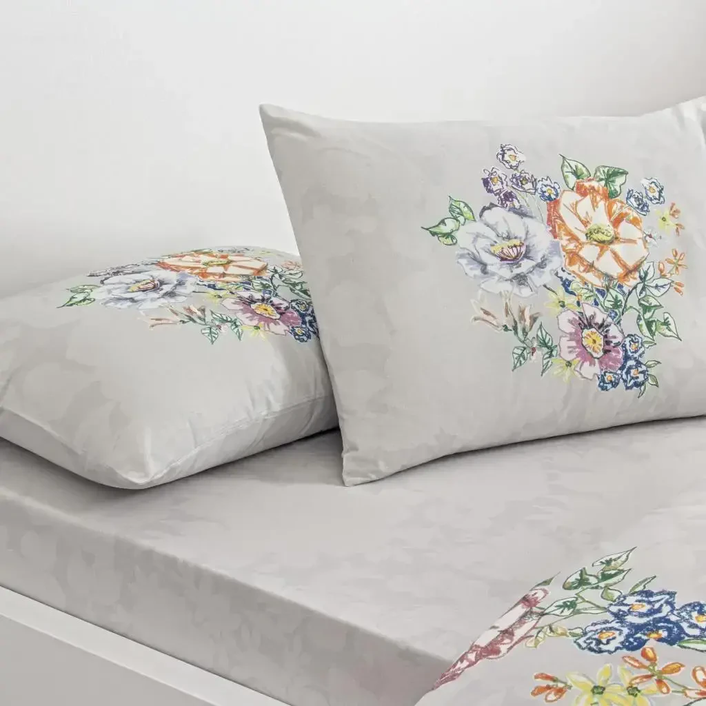 Taç Fiora Gri Çift Kişilik Pamuk Nevresim Takımı | Ranforce Yatak Örtüsü