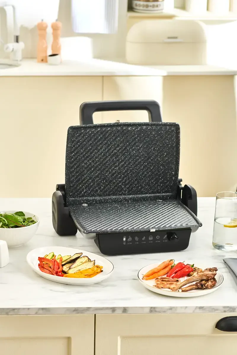Ishlatishda juda oson bo'lgan Crust Grill bir necha daqiqa ichida issiq, mazali va qisqichbaqasimon atıştırmalıklar tayyorlash imkonini beradi. Sozlanadigan harorat nazorati bilan turli xil ingredientlarni pishirish vaqtiga qarab ideal haroratni sozlash mumkin. Bundan tashqari, oson tozalanadigan yopishqoq bo'lmagan yuzasi tozalash jarayonini juda amaliy qiladi.