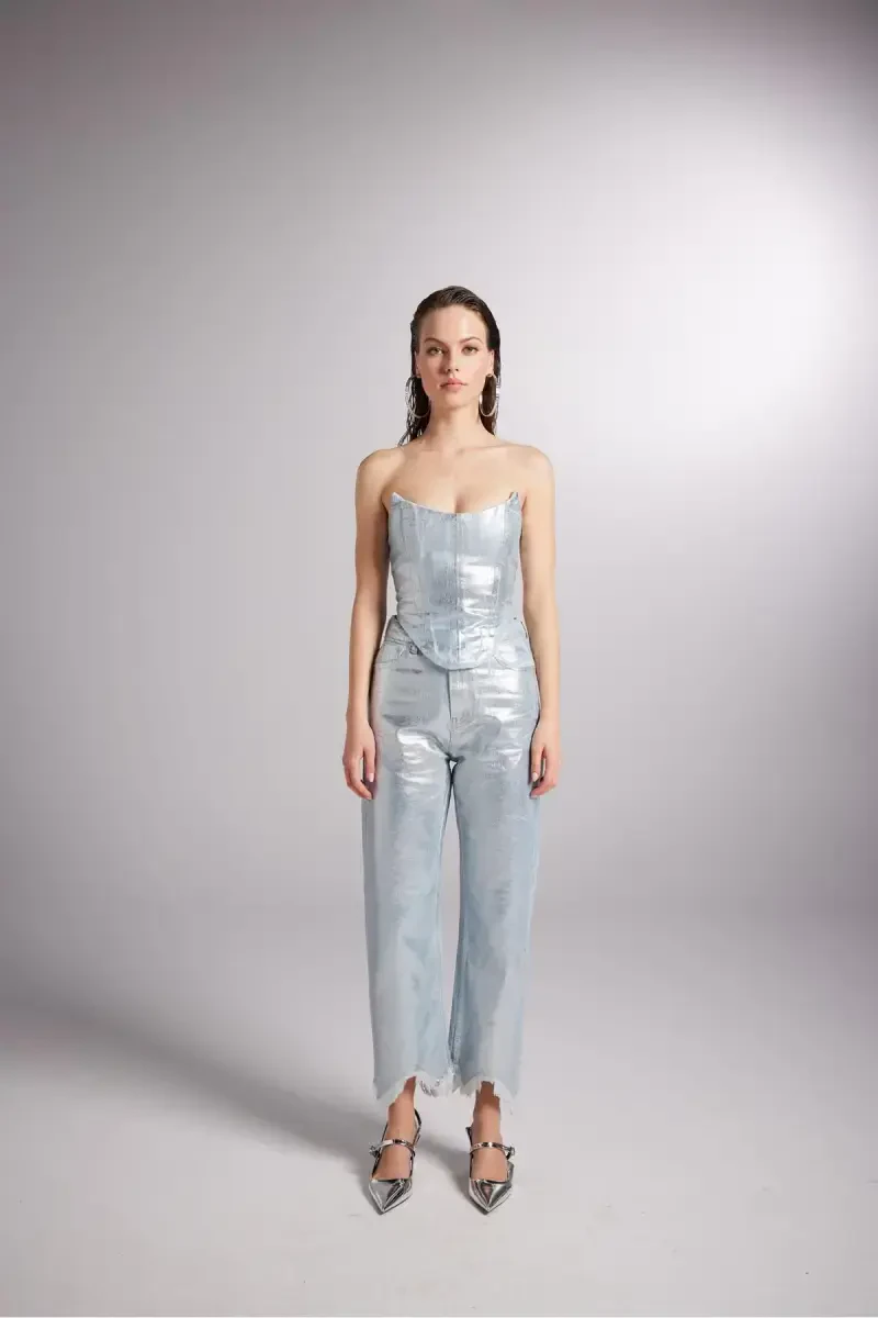 Add sparkle to your style with Custom Made Glossy Coated Jean Pants! This special design jean pants will make you stand out in any environment you enter with its extraordinary glossy coating. Made of high-quality jean fabric, it offers long-lasting and durable use. Designed in M size, it fits your body perfectly and highlights your elegant silhouette. This trousers, which will complete your daily elegance or accompany you while preparing for a special night, is a candidate to be the most loved piece of your wardrobe. While the glossy surface reflects light, the comfort of jean fabric provides comfort all day long. Whether you combine it with a sporty t-shirt or complete it with a stylish blouse, it will reflect your style in the best way in every situation. With its special sewing details and perfect workmanship, these trousers are not just a piece of clothing, but also a form of expression. You should definitely try these glossy coated jean pants to feel special and express your style. If you are looking for a unique and assertive piece that keeps up with the pulse of fashion, these trousers are for you. This jean pants, which contains care and quality in every detail, will take your style to the next level and give you an unforgettable look. Enjoy being both stylish and comfortable with its eye-catching shine and comfortable cut. These trousers will excite you not only when you wear them, but also when they are in your closet, and will be a source of inspiration for every combination. It will always make you feel stylish and confident in your special moments or in your daily life. It is an ideal choice for those who want to reflect their own style and attract attention. Thanks to its glossy coating, it catches a different color tone in every light, which adds a separate dynamism to the trousers. With its special design and high-quality material, these jean pants will continue to be the star of your wardrobe for many years to come.