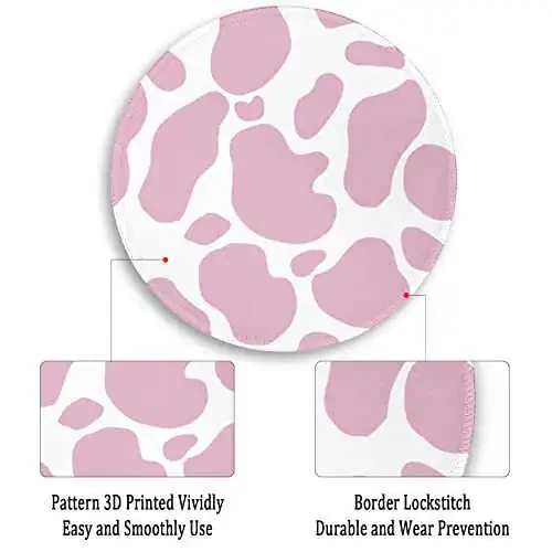 This cute cow print round mouse pad is perfect for your laptop or desktop computer, and it's small enough to fit comfortably on any desk. It's a great choice for both work and gaming, and makes a wonderful gift for girls, women, or teens. Featuring stitched edges and a non-slip rubber base, this mouse pad will stay securely in place on your desk. It's also a great decoration for your office or workspace.