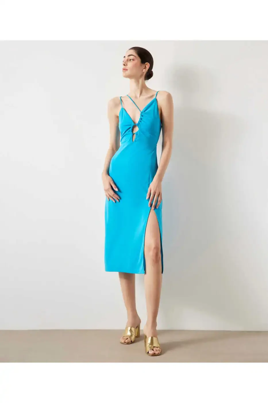You can combine this dress with flat sandals or sneakers for a casual everyday look. You can also pair it with heels to transform it into a chic evening dress. The Cutout midi jersey dress is sure to become an indispensable part of your wardrobe.